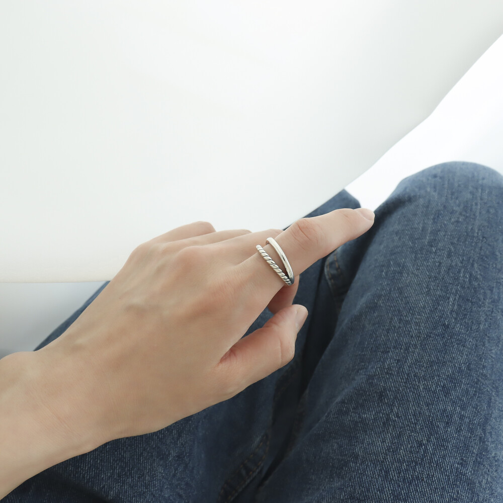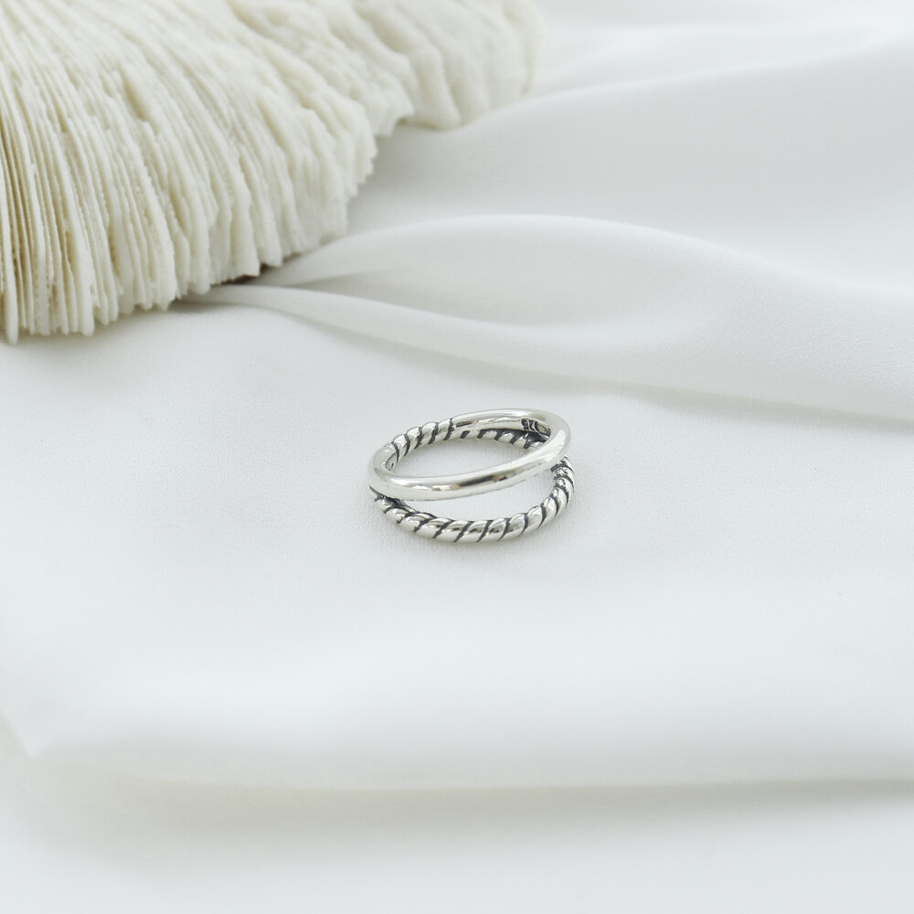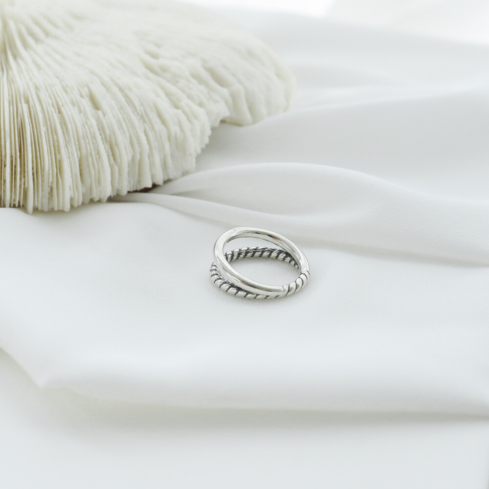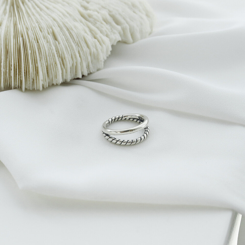 102058 2-Line Bold Oxidized Silver Ring