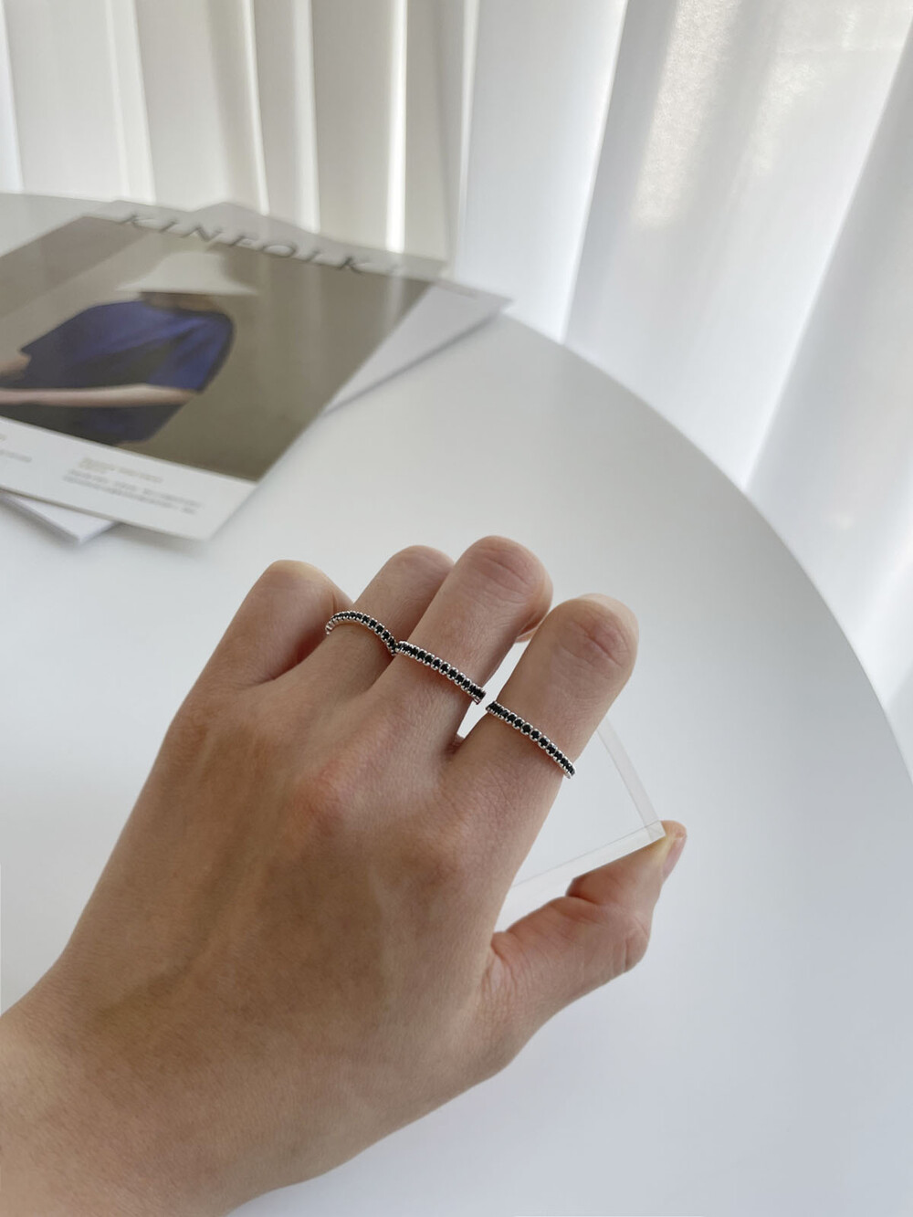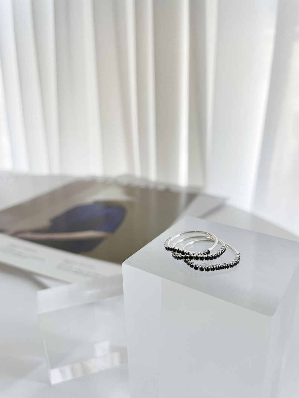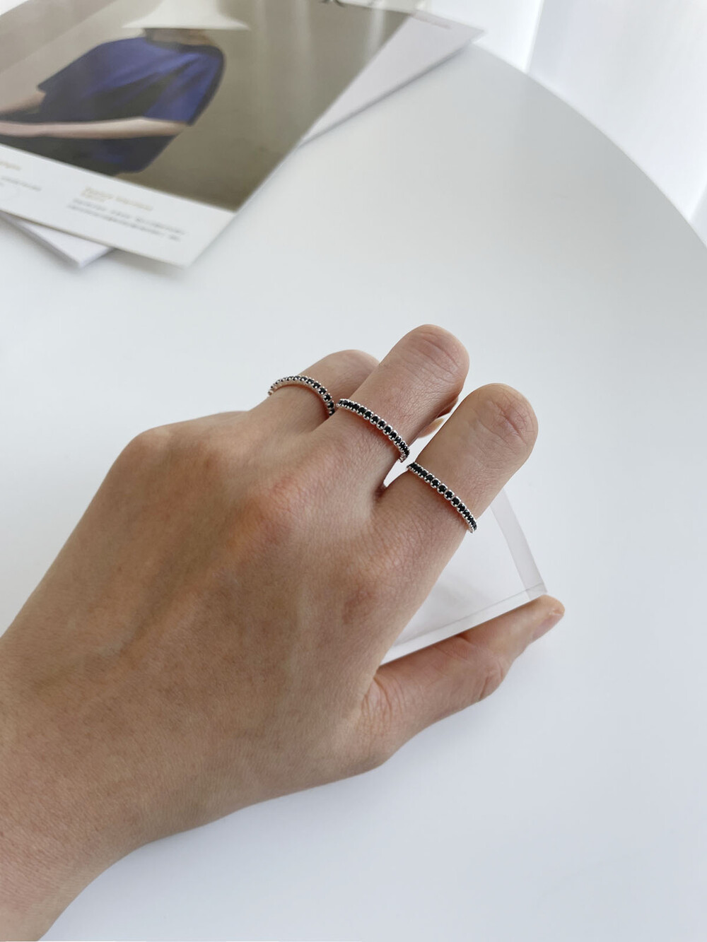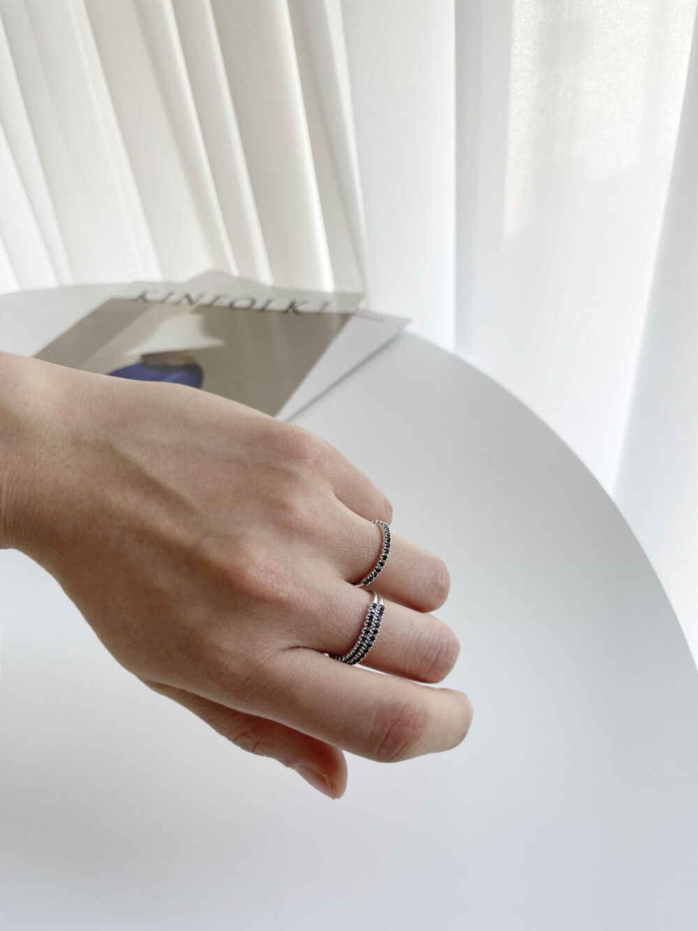 102080 Black Cubic Layered Ring Sterling Silver 925