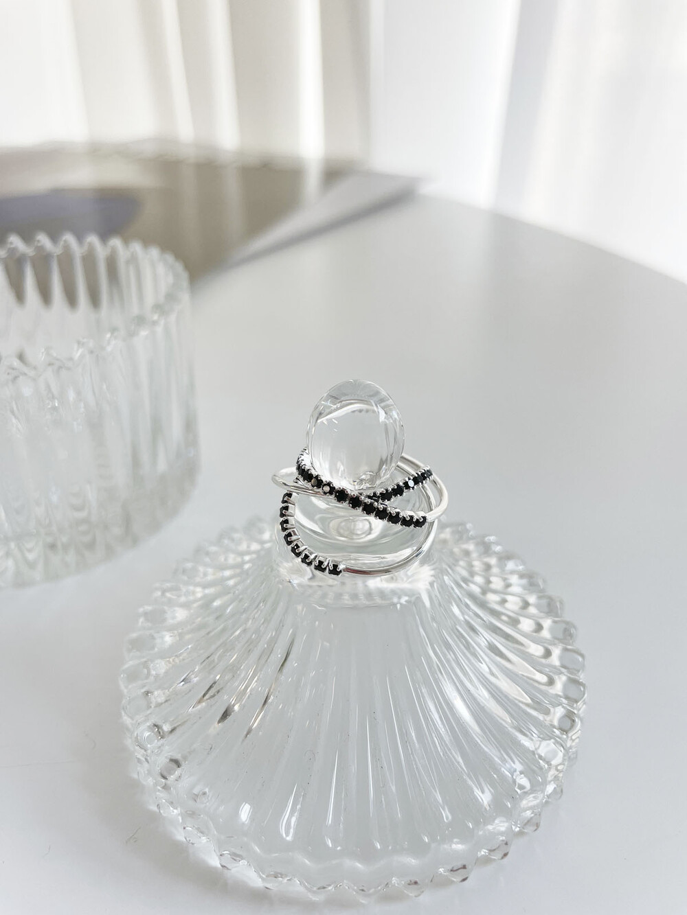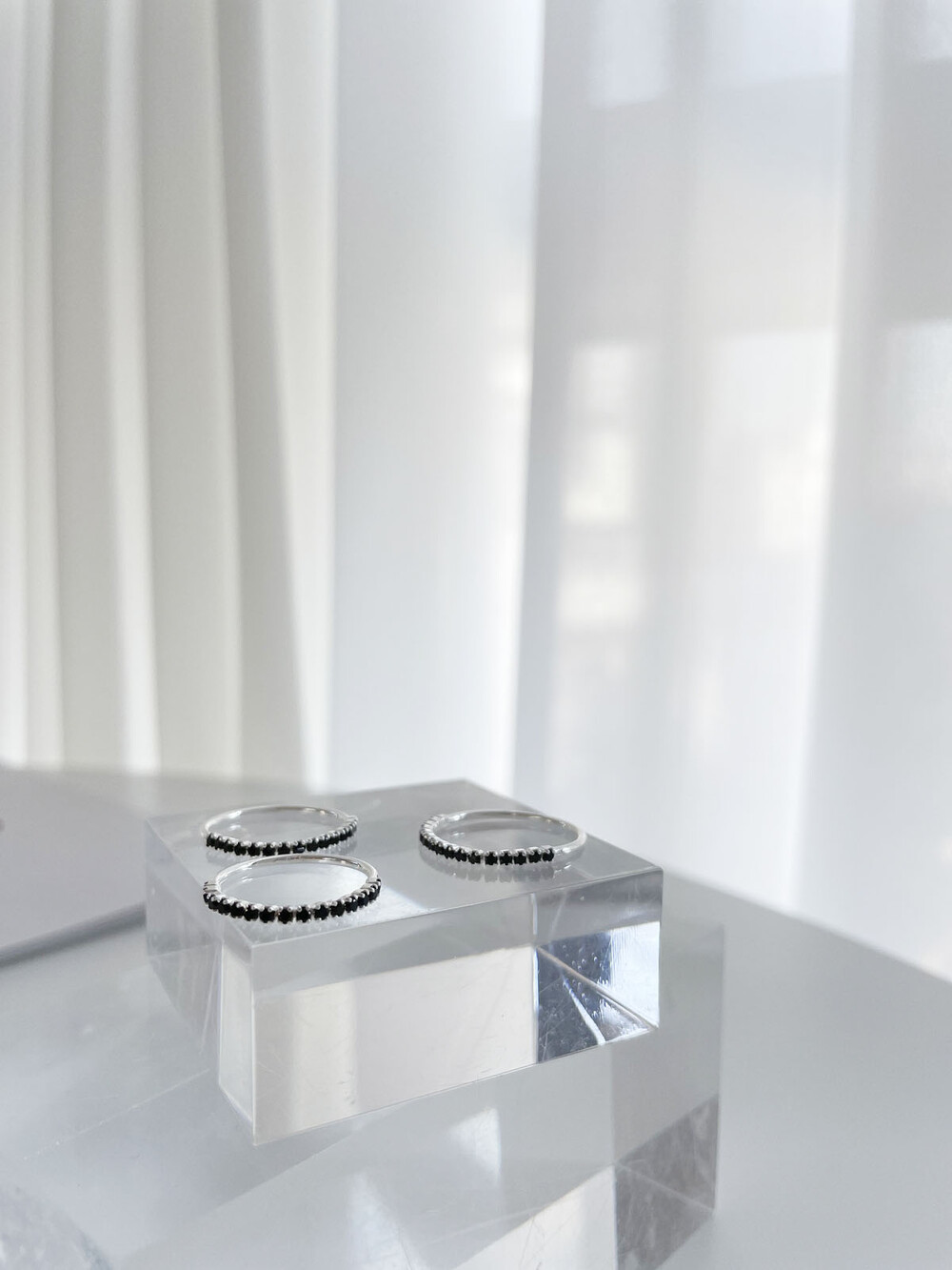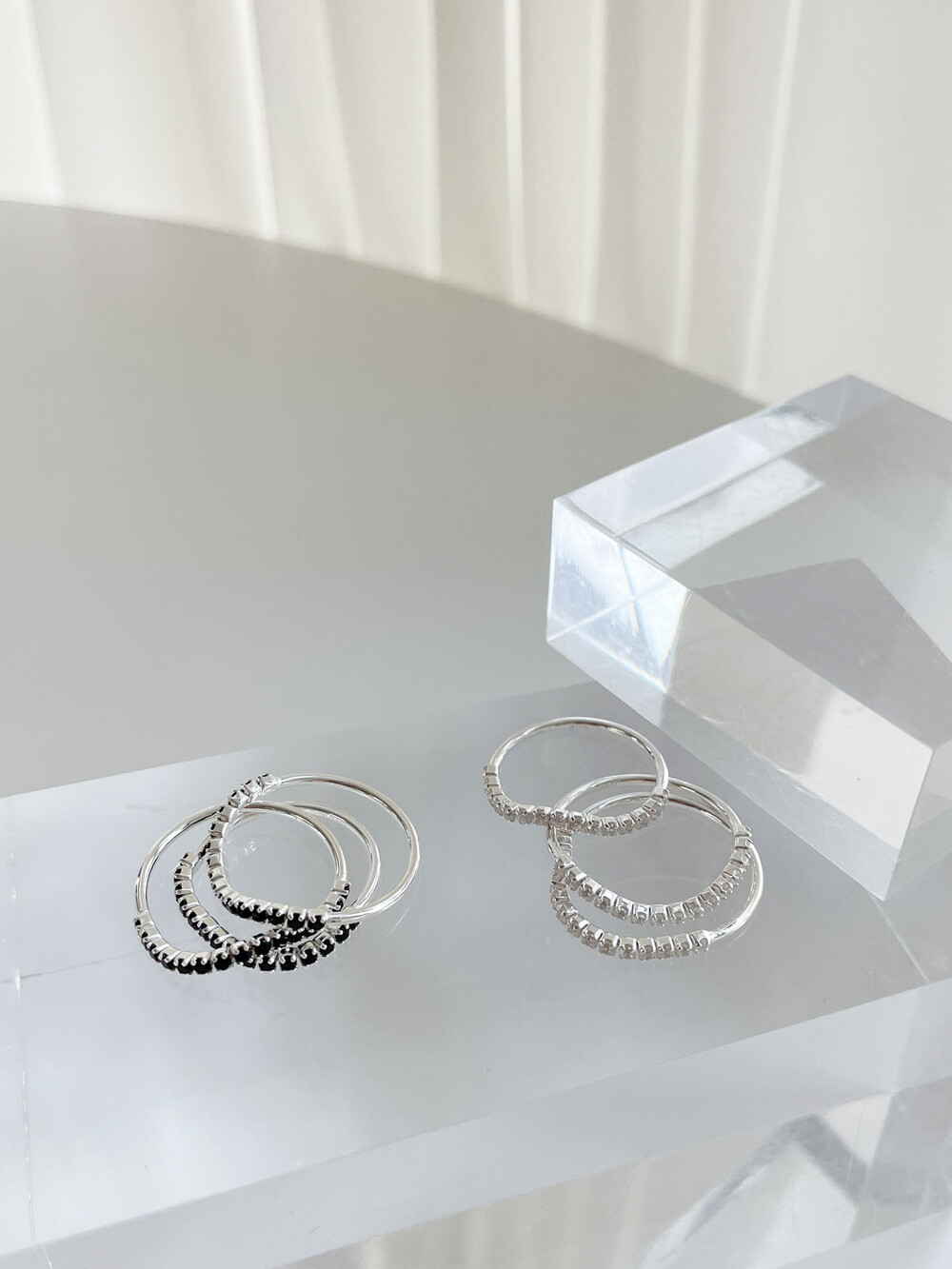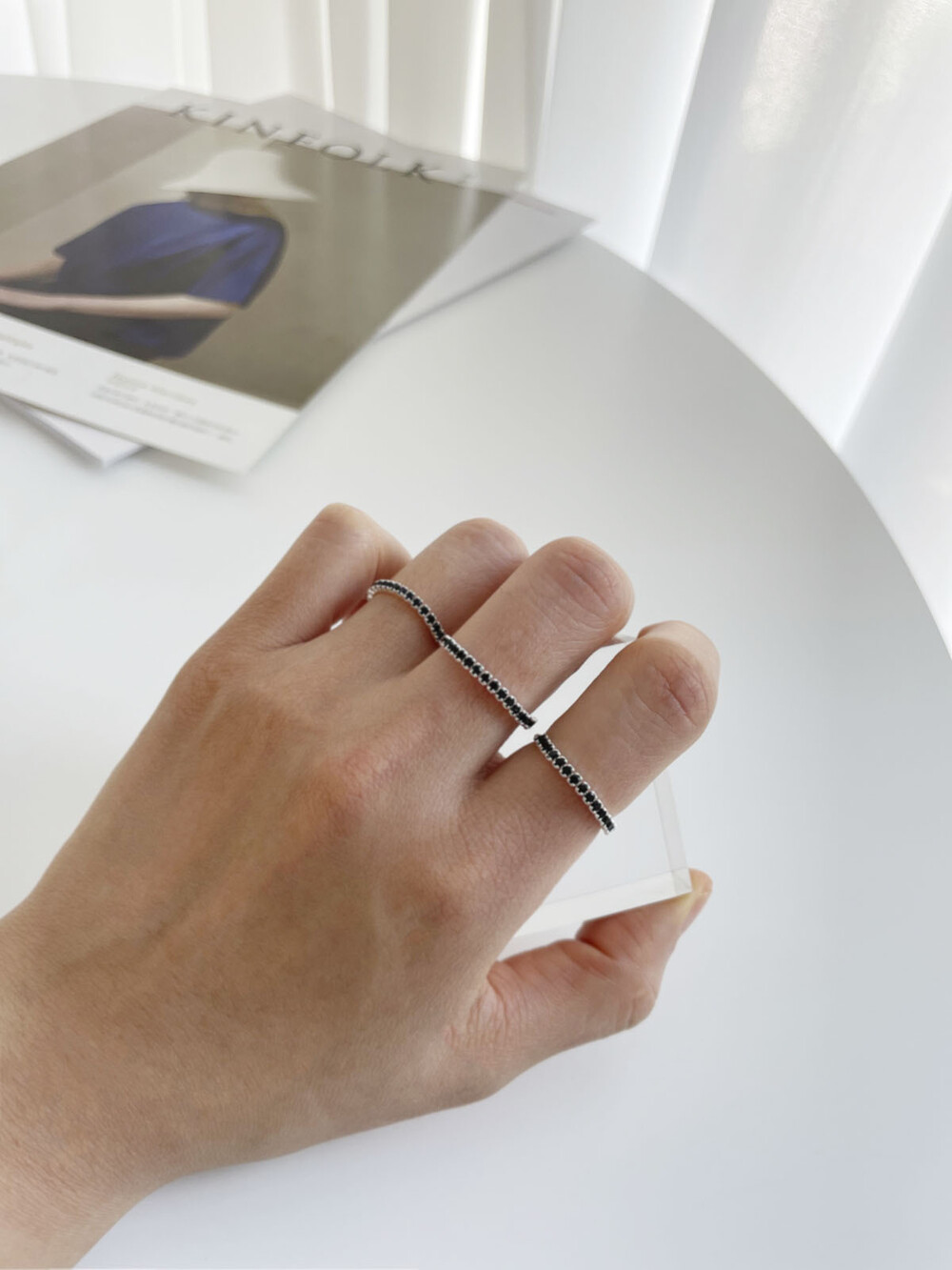102080 Black Cubic Layered Ring Sterling Silver 925