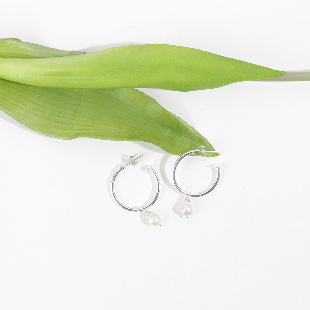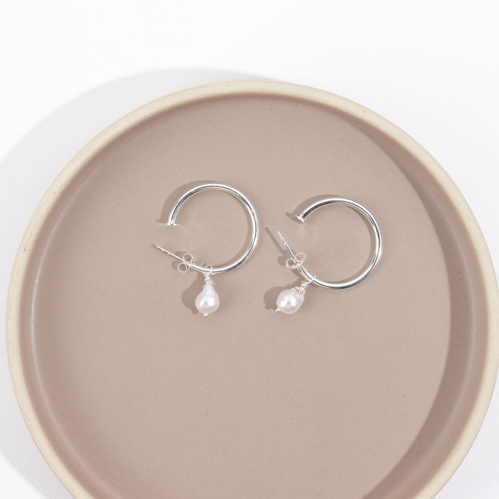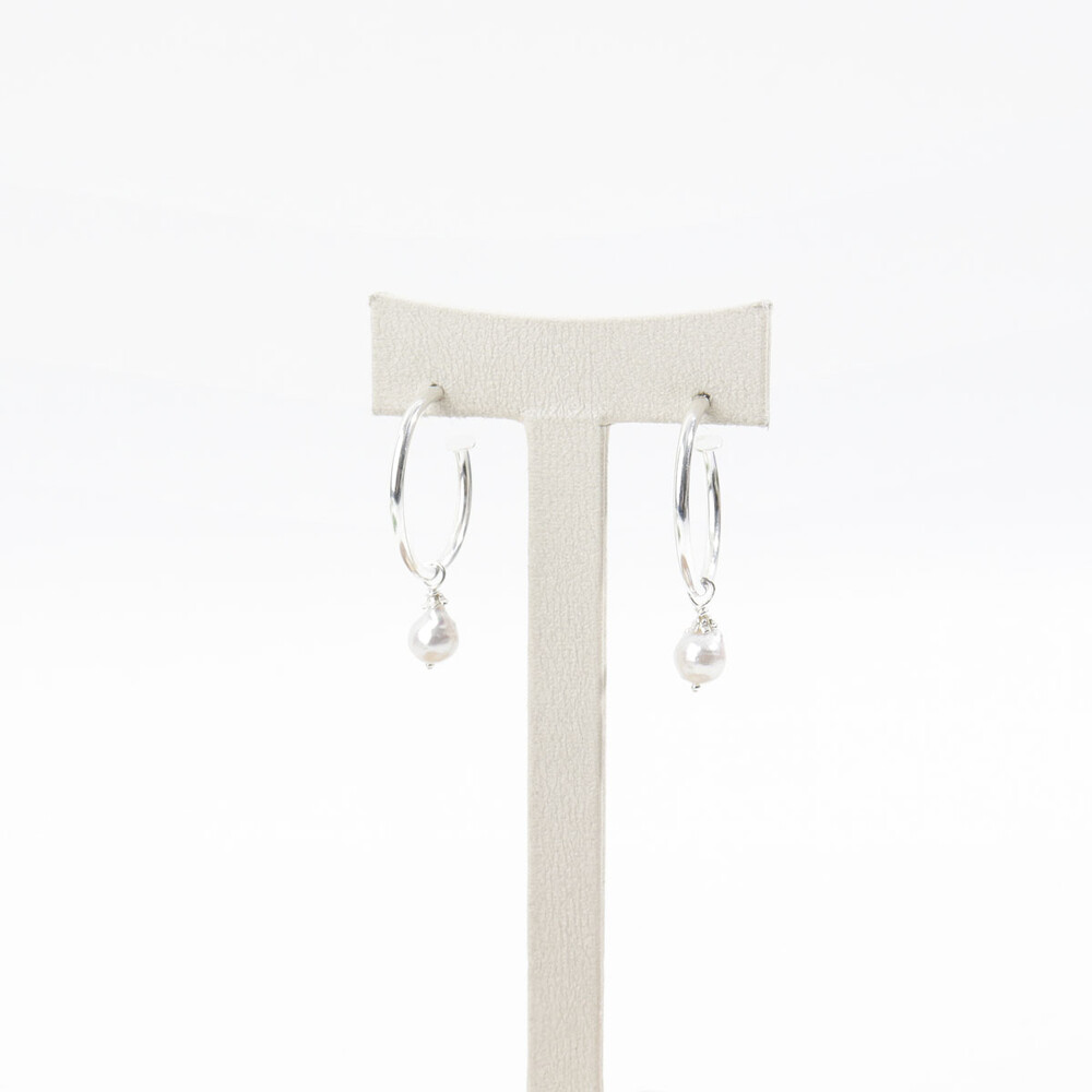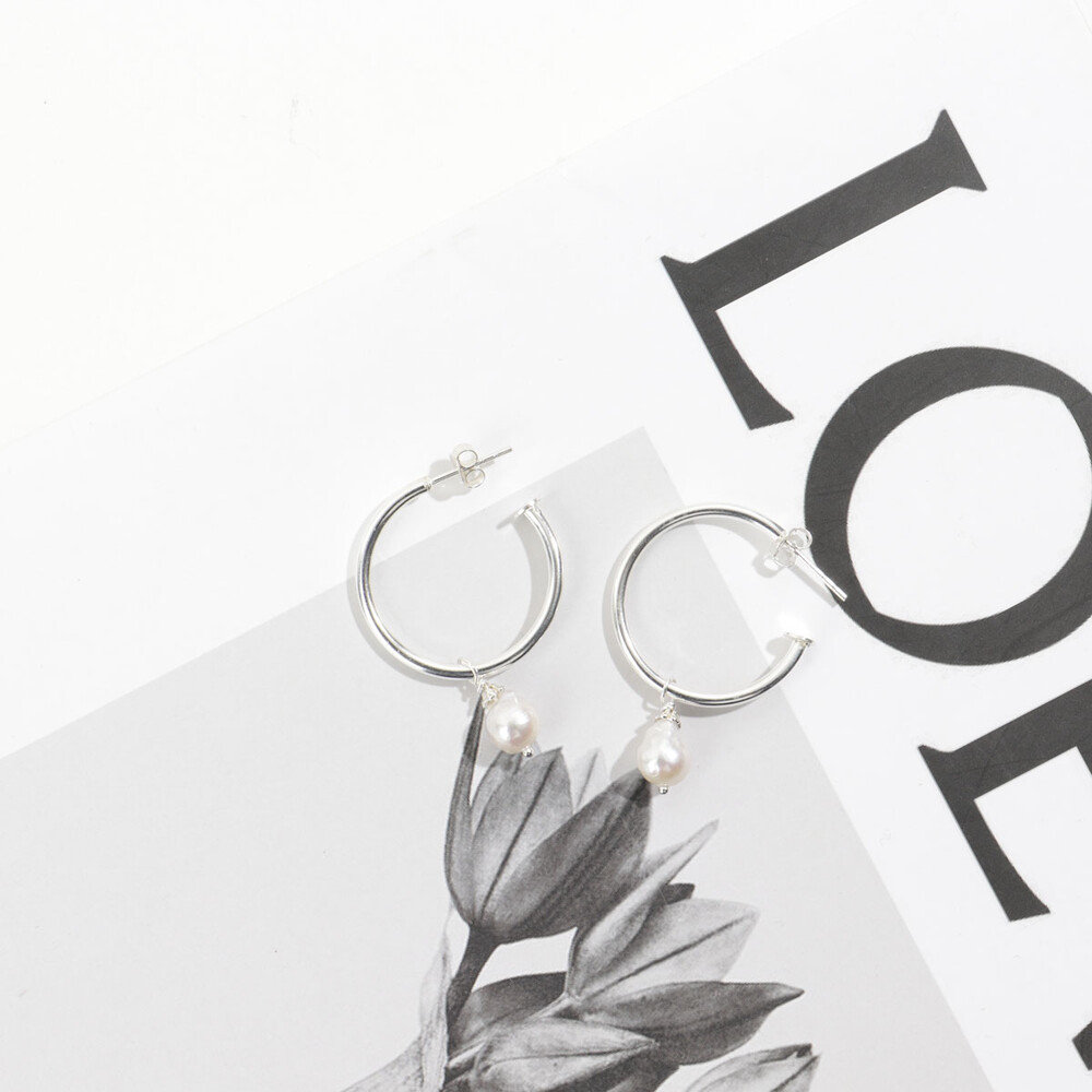 102105 Medium Hoop Freshwater Pearl Earrings Sterling Silver 925