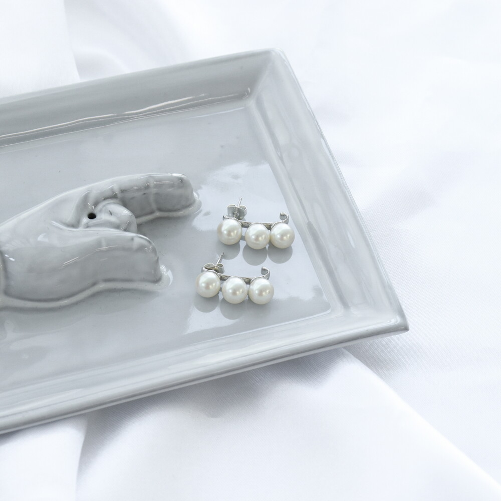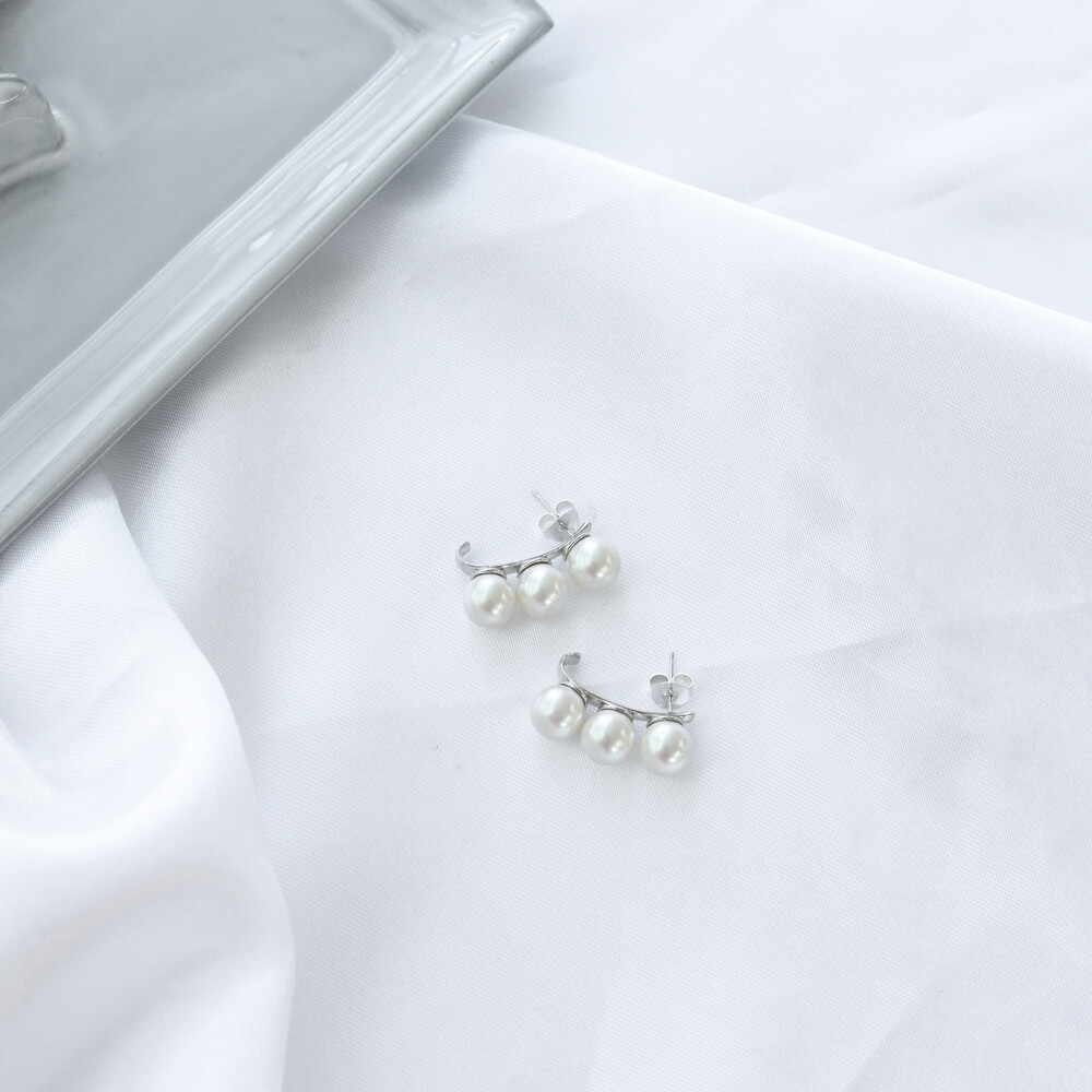 102106 Imitation Pearl Drop Silver Earrings