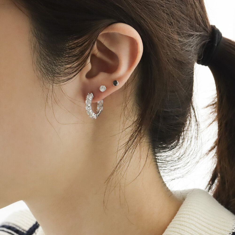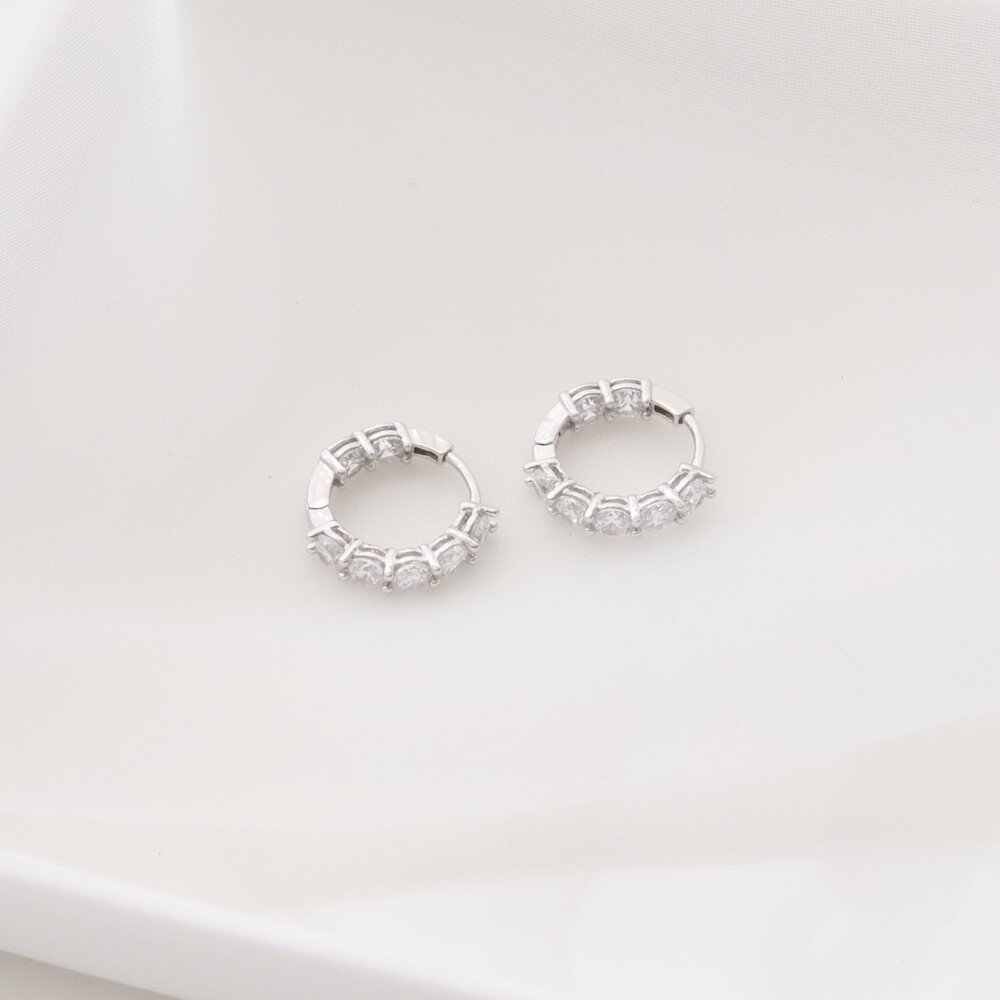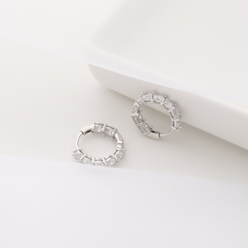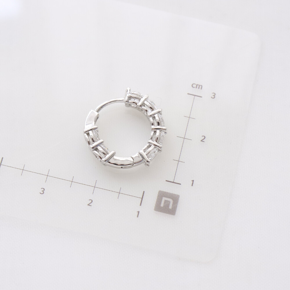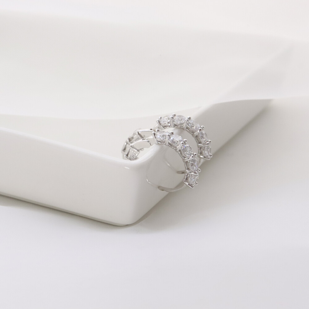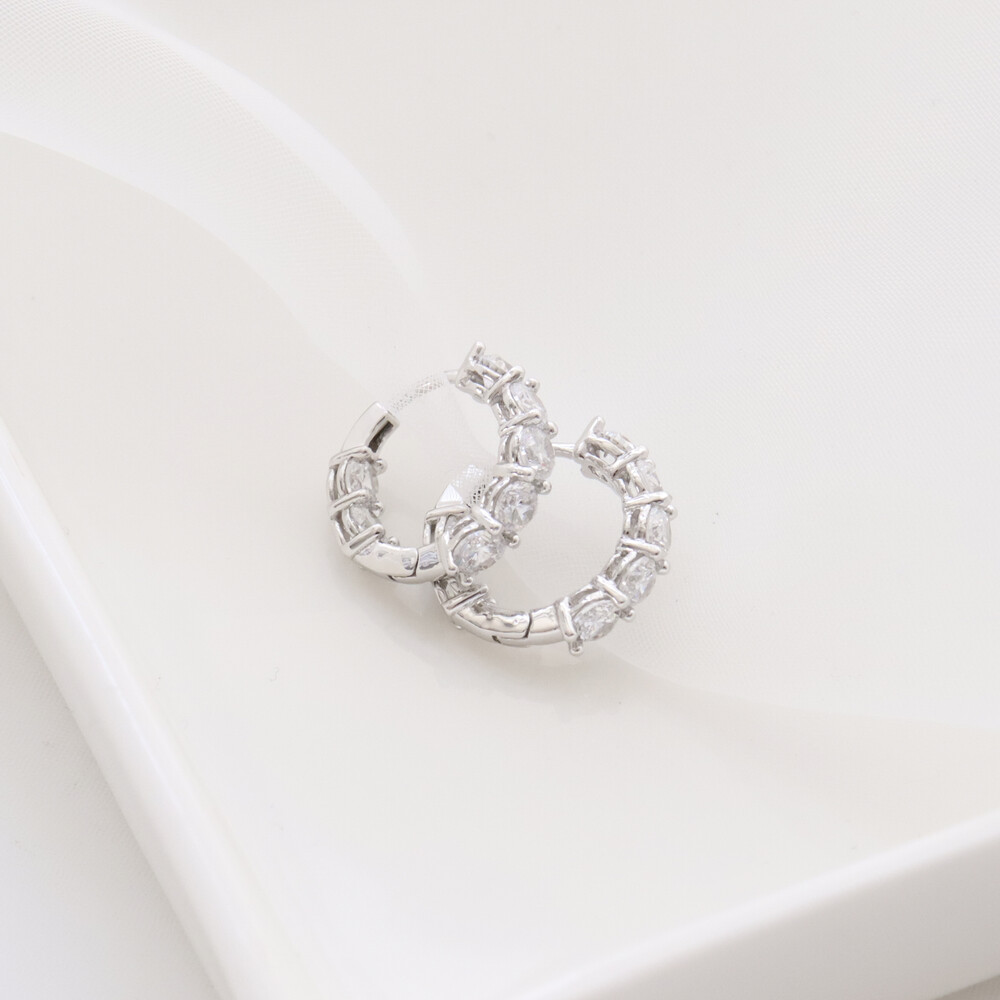102117 Imitation Diamond Round Hoop Silver Earrings 20 mm