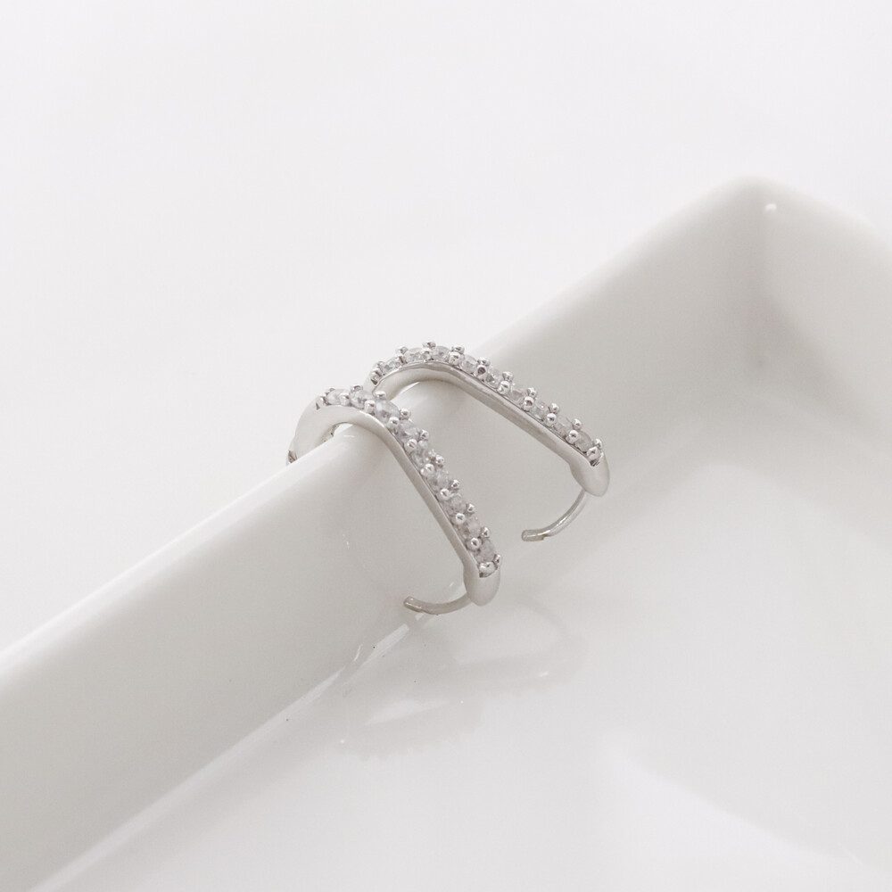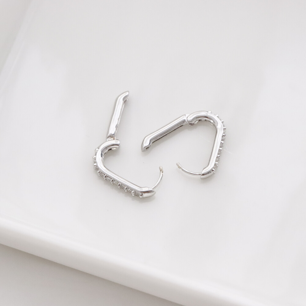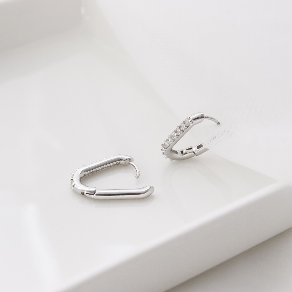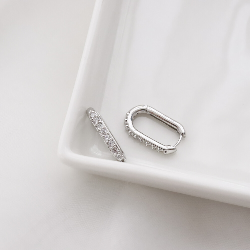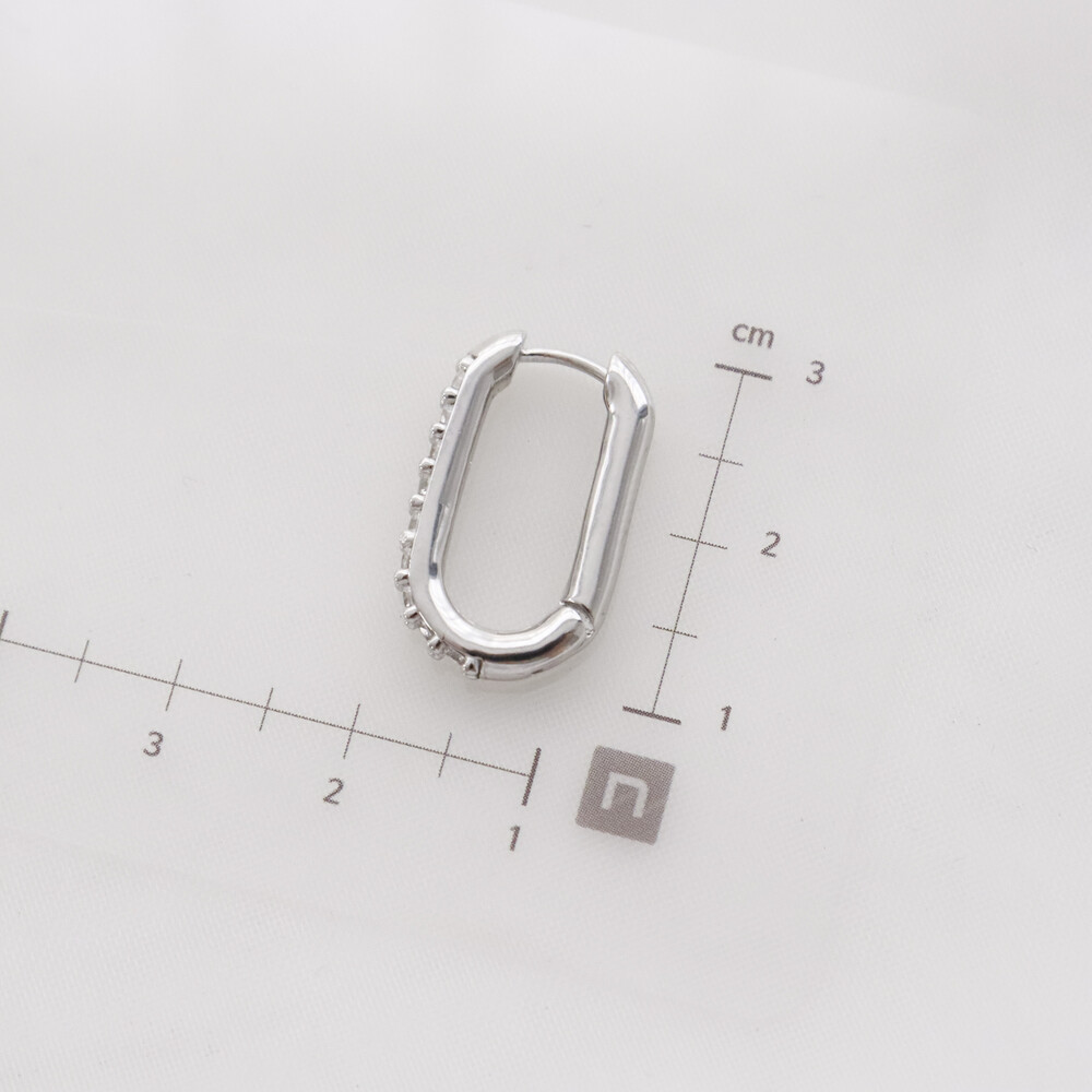 102118 Imitation Diamond Oval Hoop Silver Earrings 20x12 mm