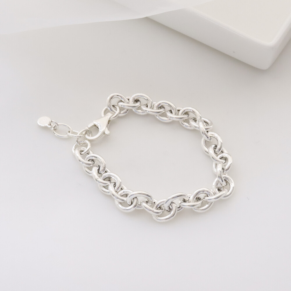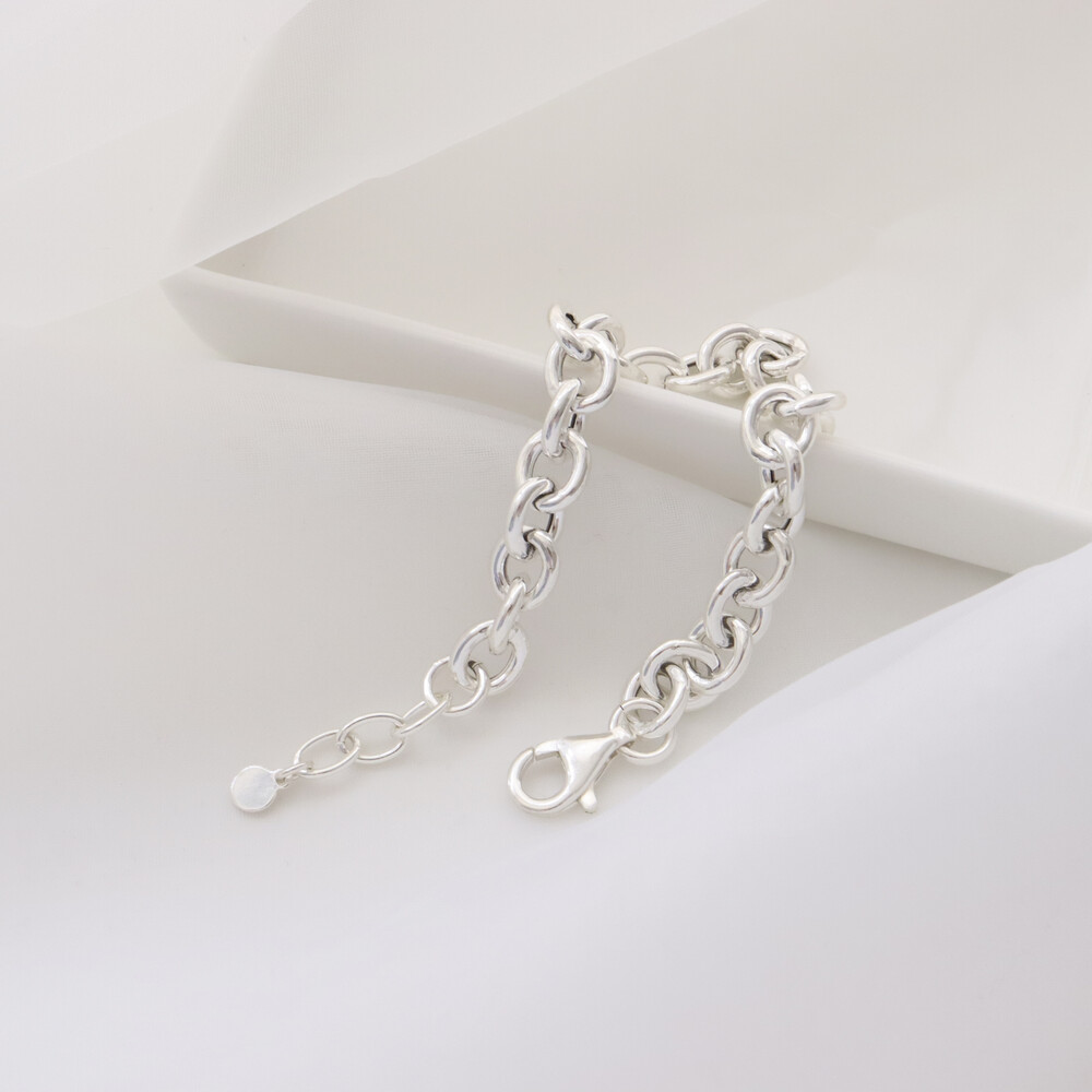 102121 Hollow Chain Silver Bracelet 17 cm Extra Chain Very Light Weight