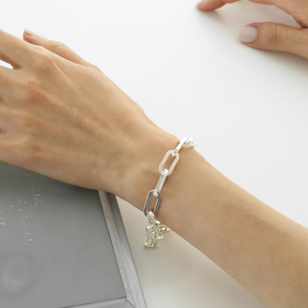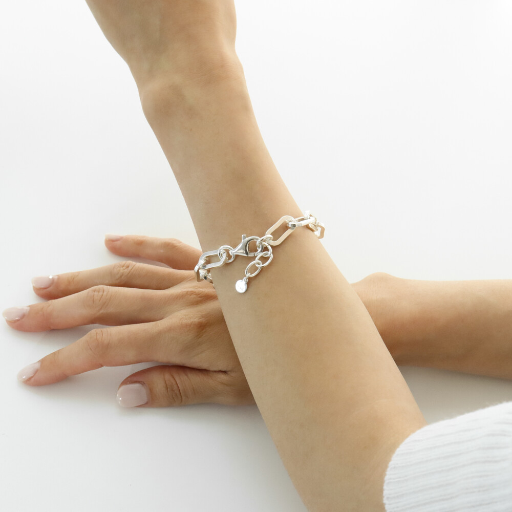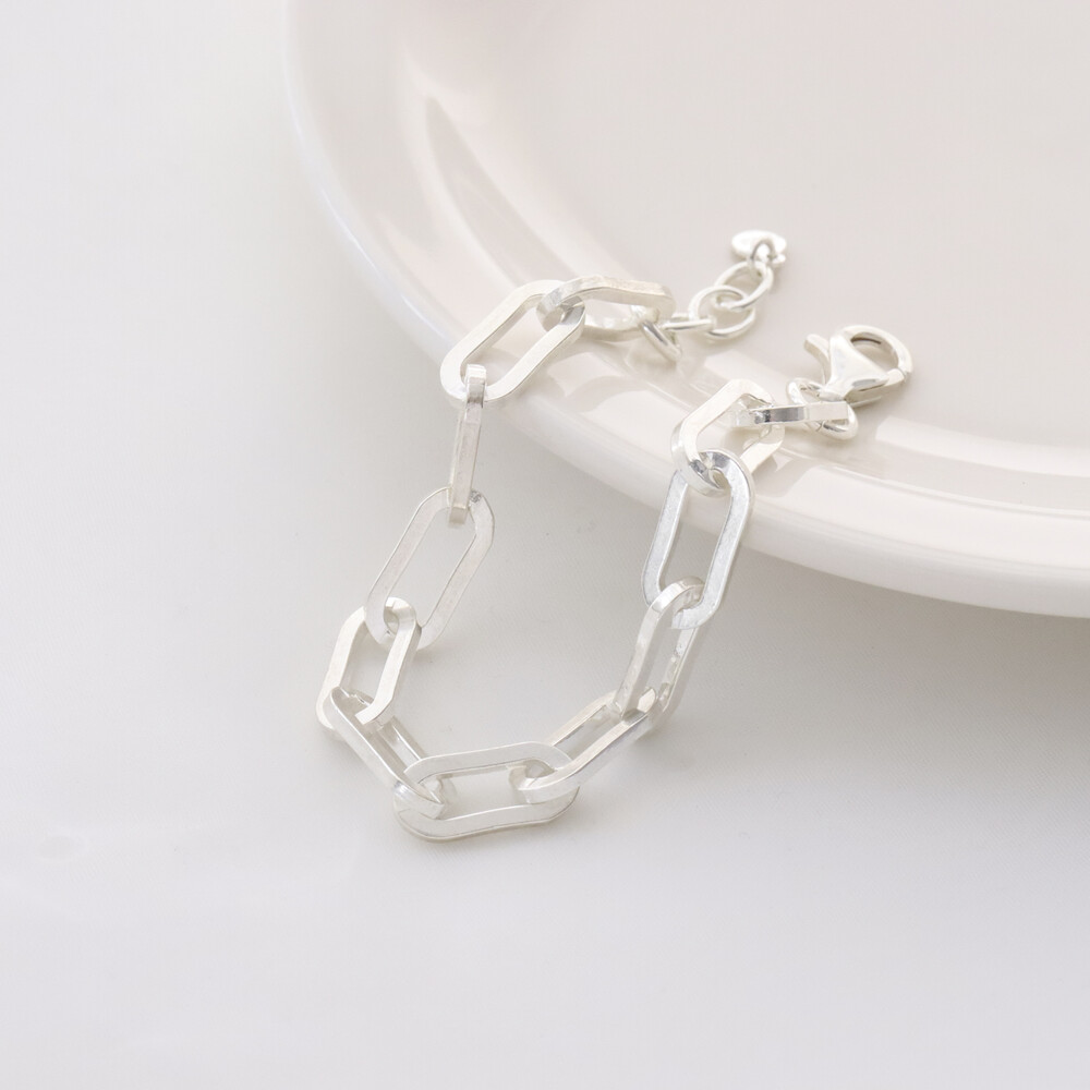 102122 Hollow Chain Silver Bracelet 17 cm Extra Chain Very Light Weight