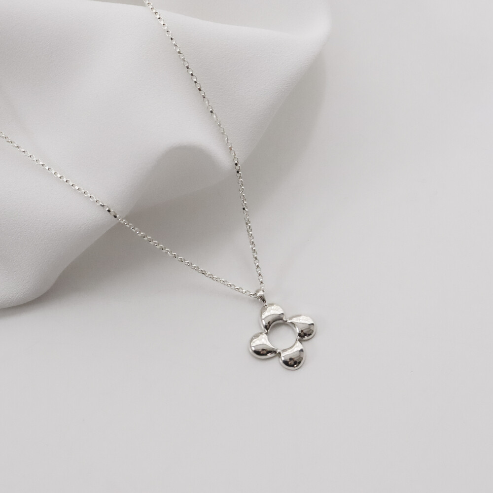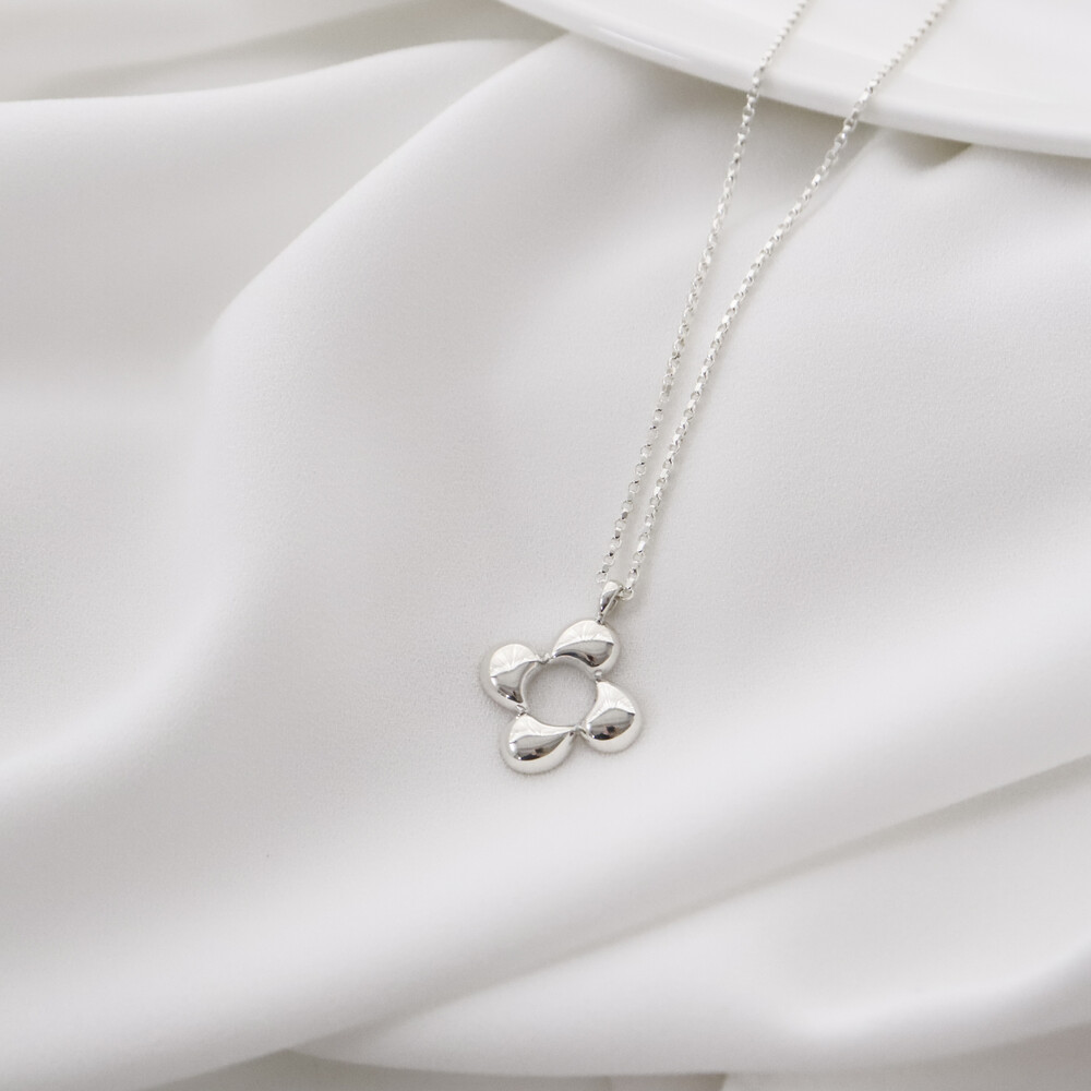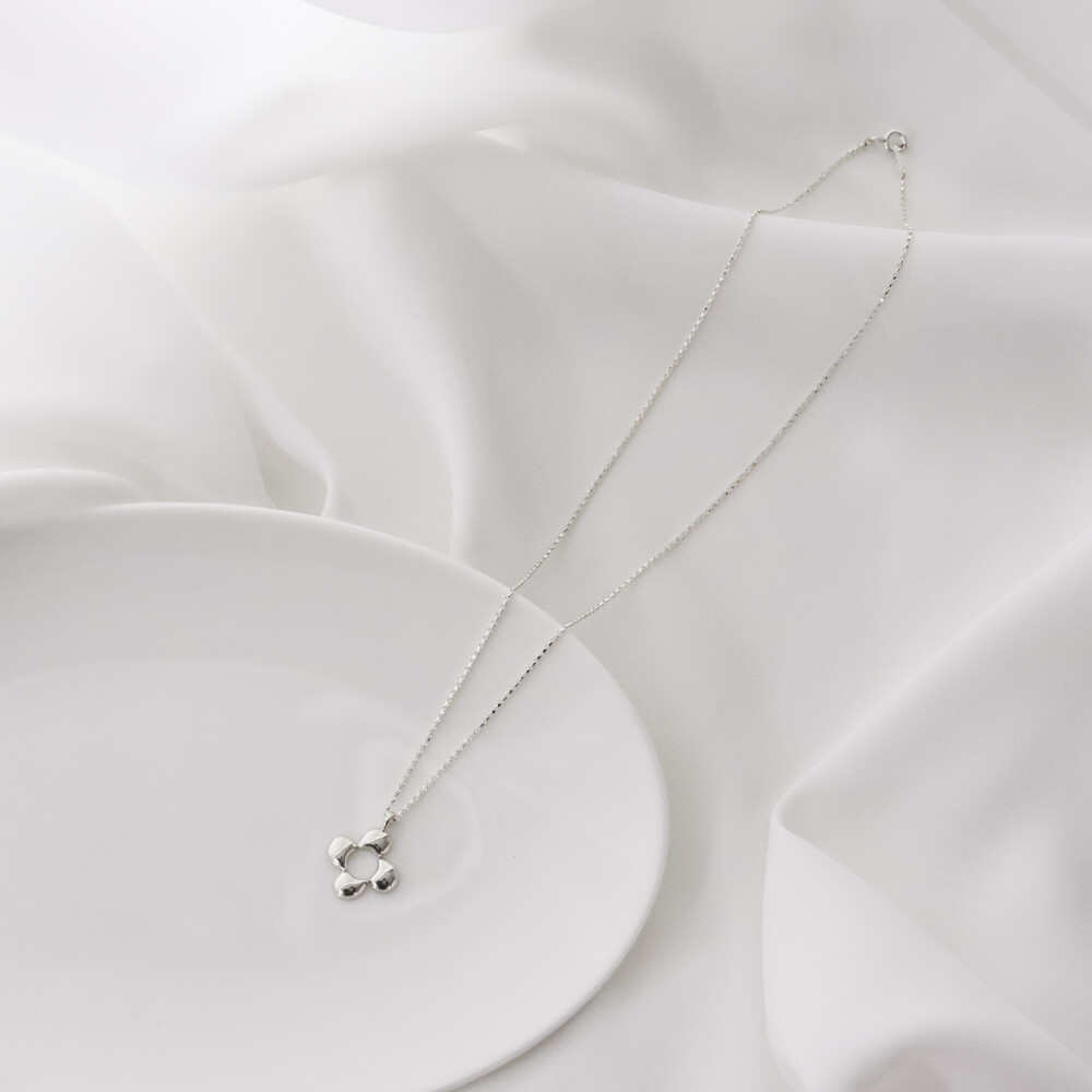 102125 Flower Motif Pendant Silver Necklace 42 cm