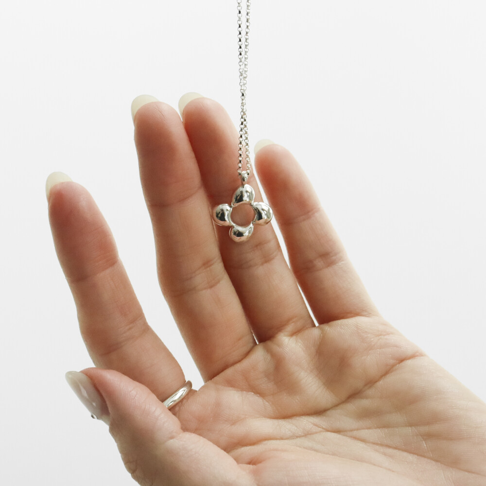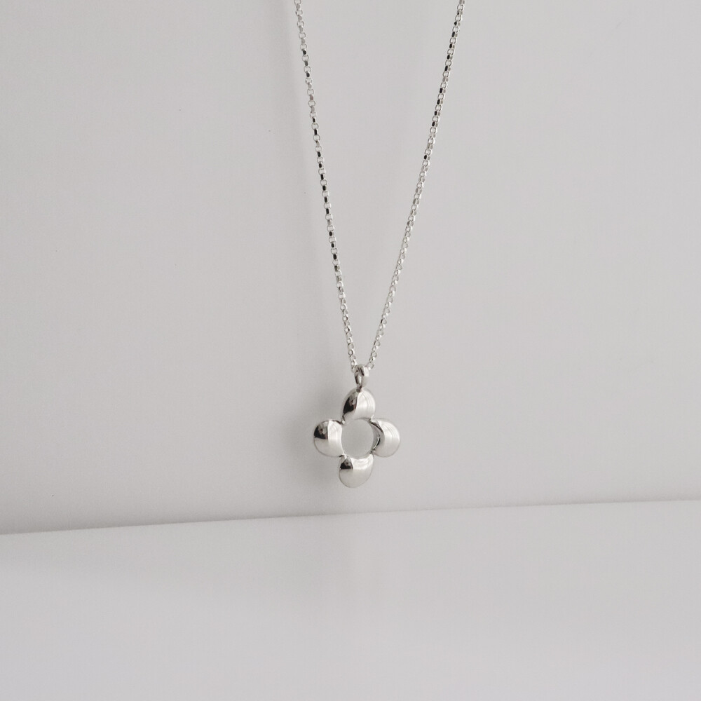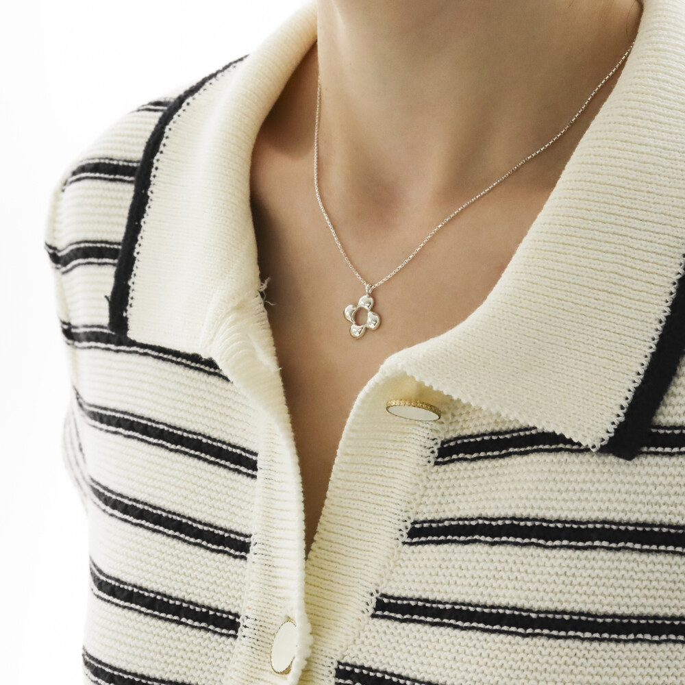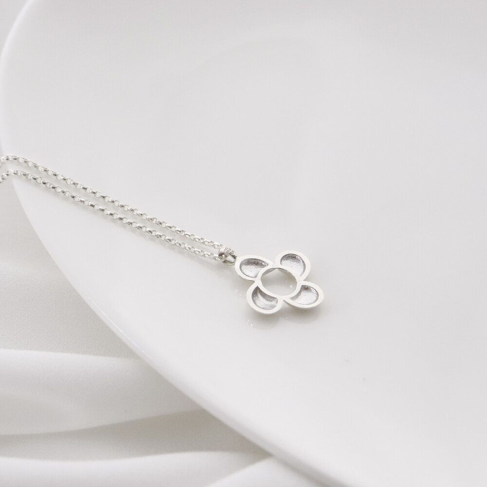 102125 Flower Motif Pendant Silver Necklace 42 cm