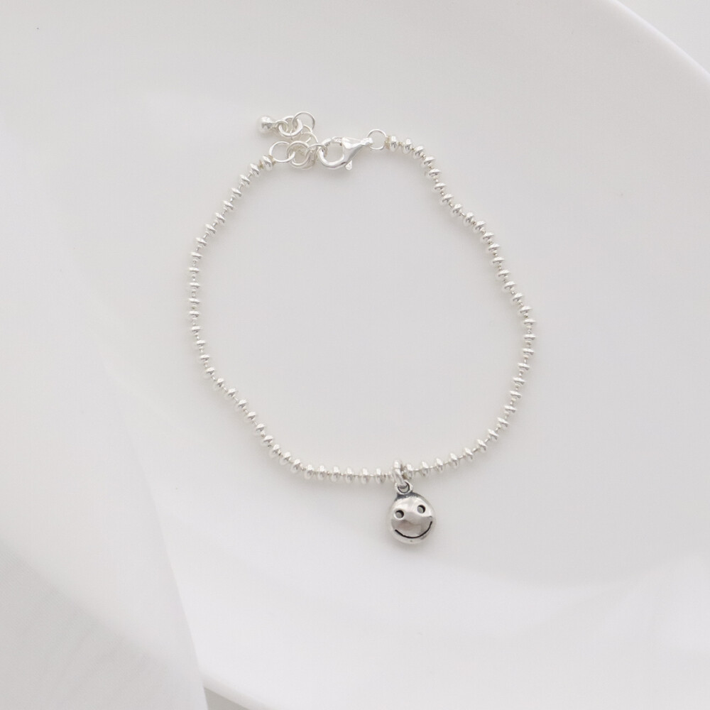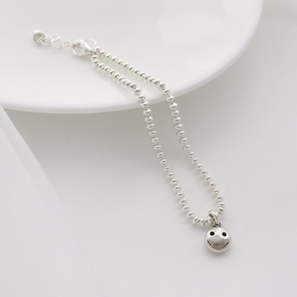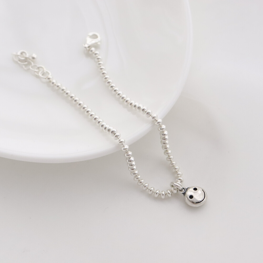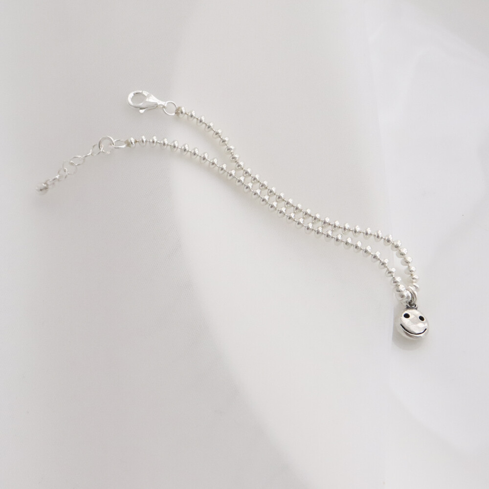 102135 7mm Smile Pendant Simple Silver Bracelet 17 cm + Extra Chain