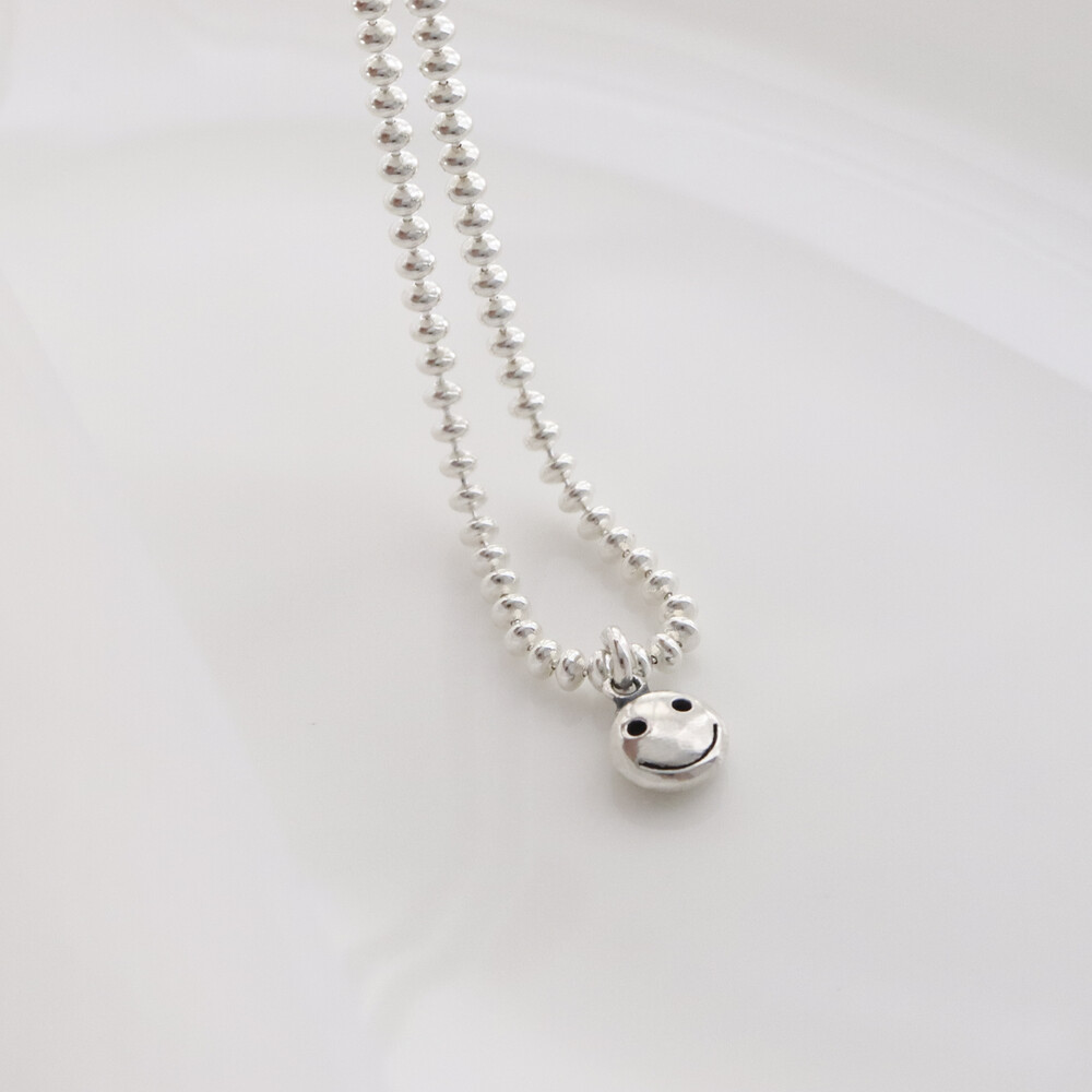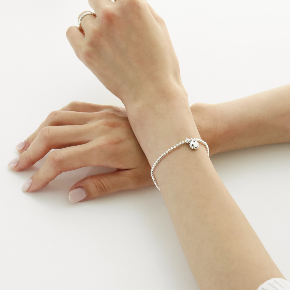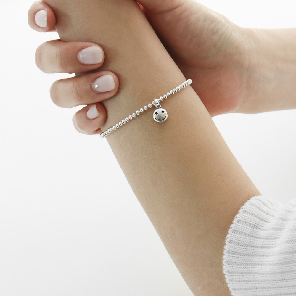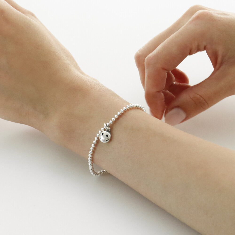 102135 7mm Smile Pendant Simple Silver Bracelet 17 cm + Extra Chain