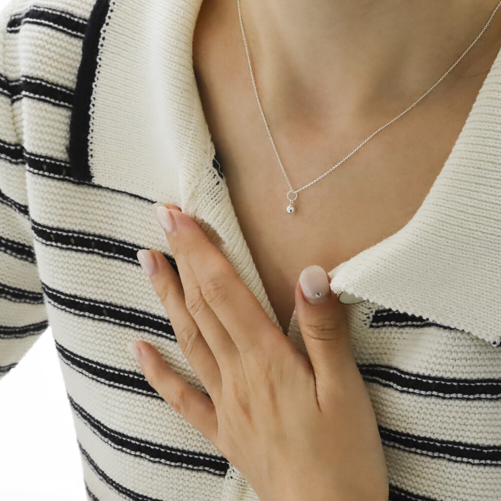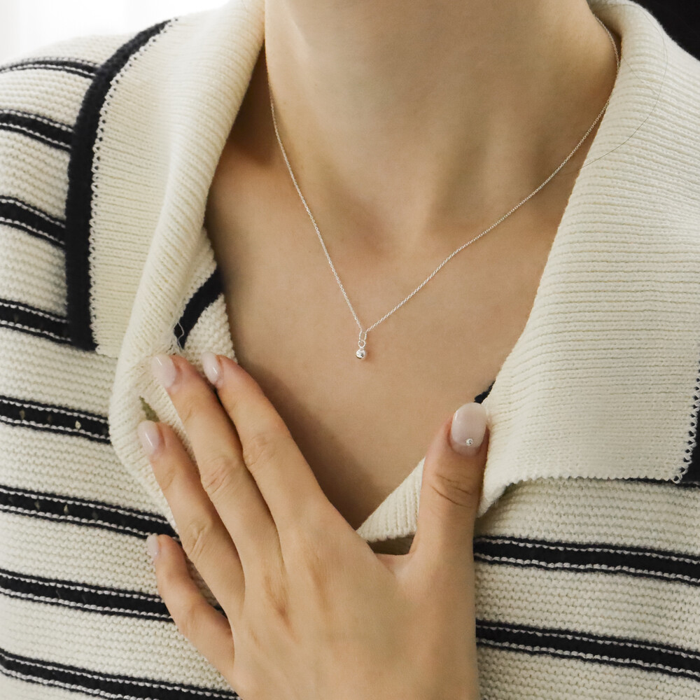 102141 Simple Mini Ball Pendant Silver Necklace 42 cm