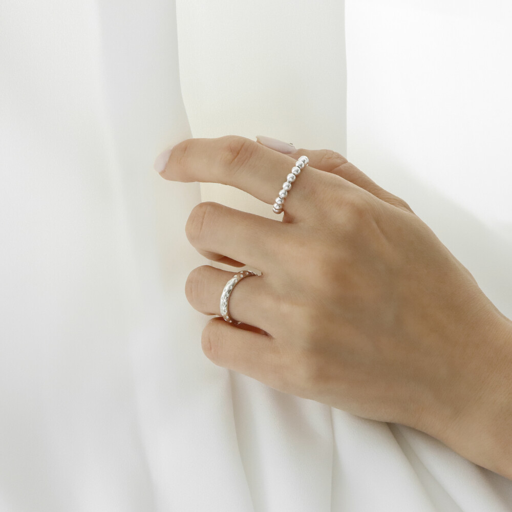 102142 Unique Patterned Silver Ring 3 mm