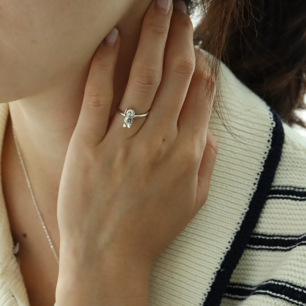 102144 Dog Puppy Motif Silver Ring 2 mm
