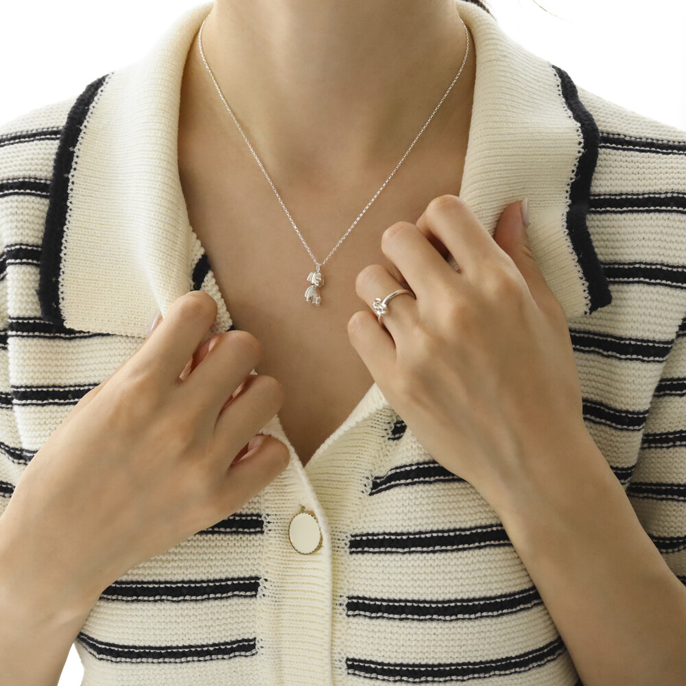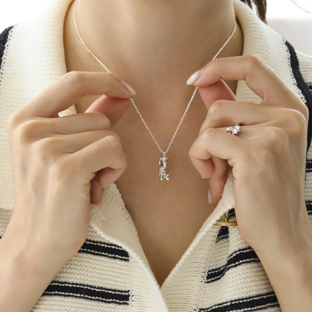 102145 Puppy Motif Pendant Silver Necklace 42 cm
