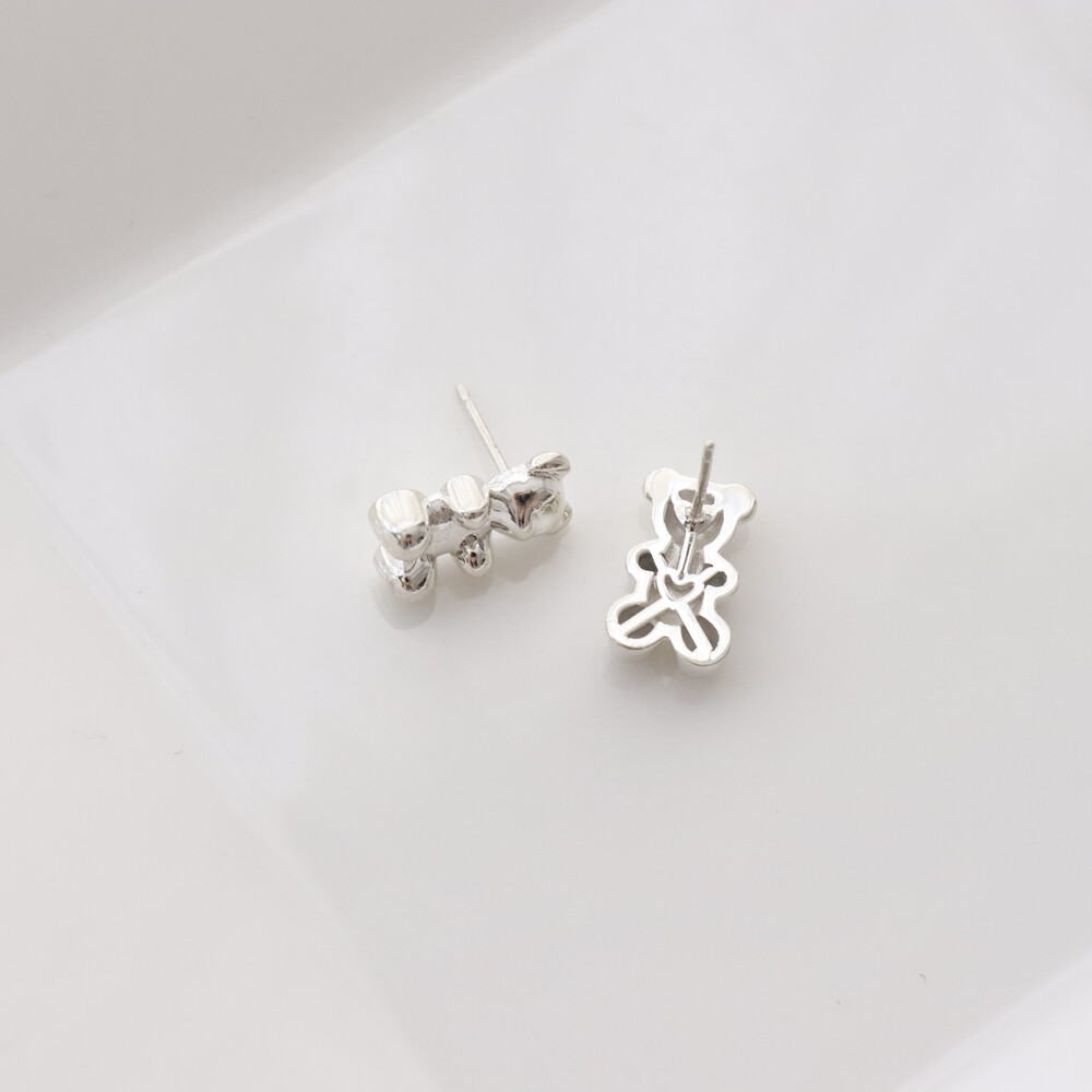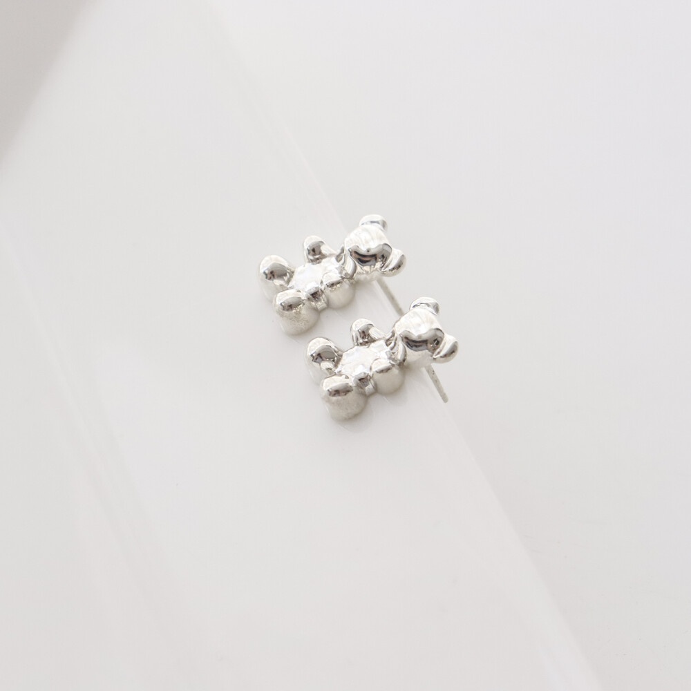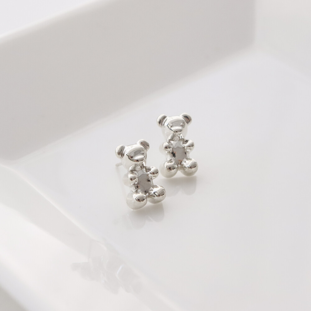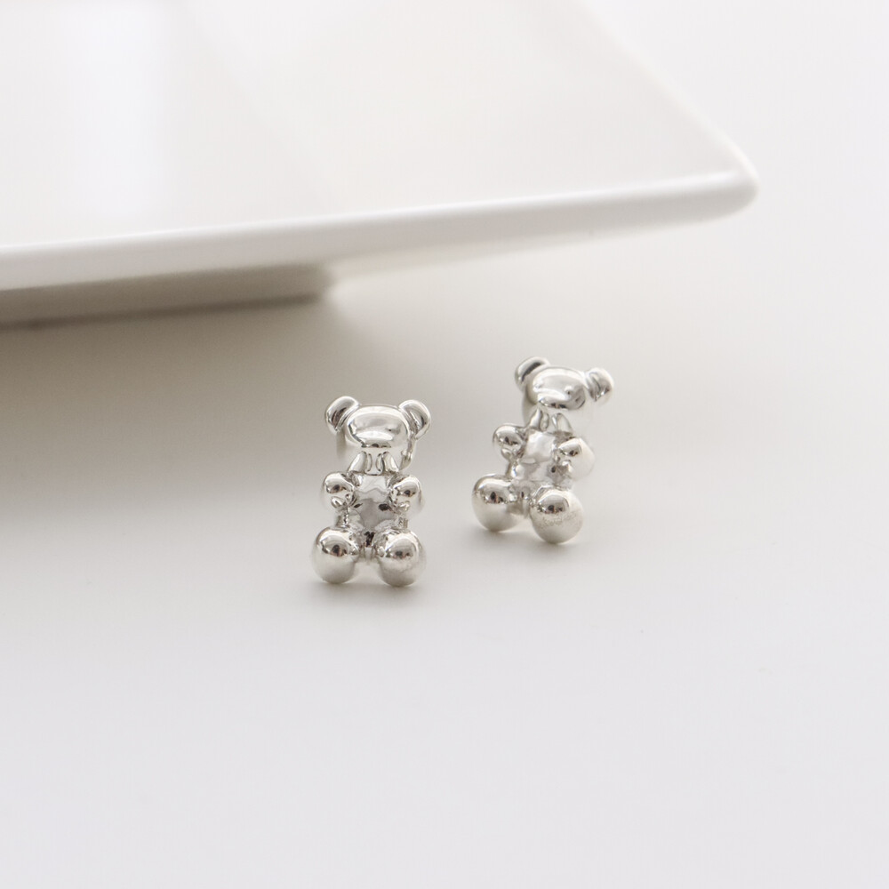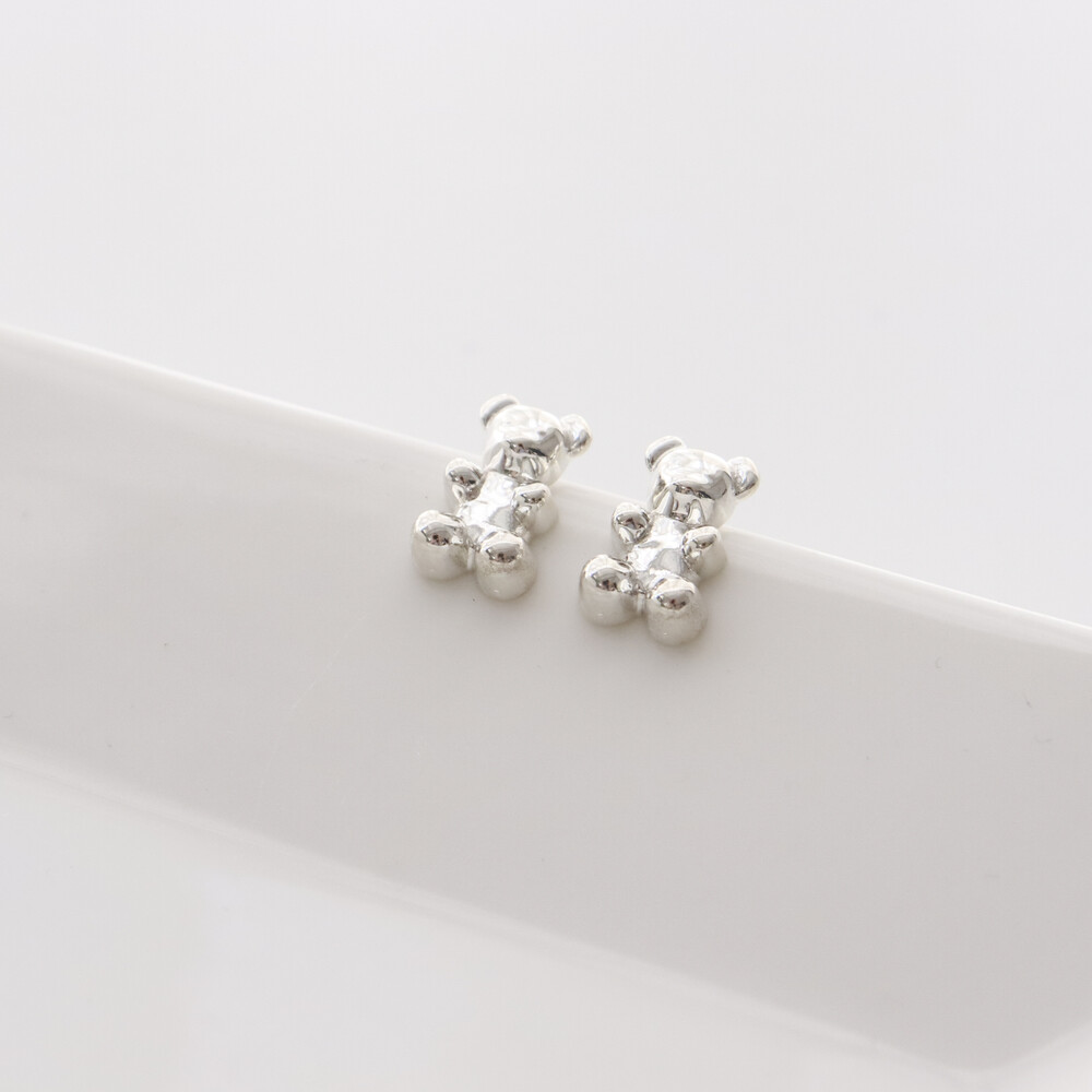 102149 Jelly Bear Motif Stud Silver Earrings