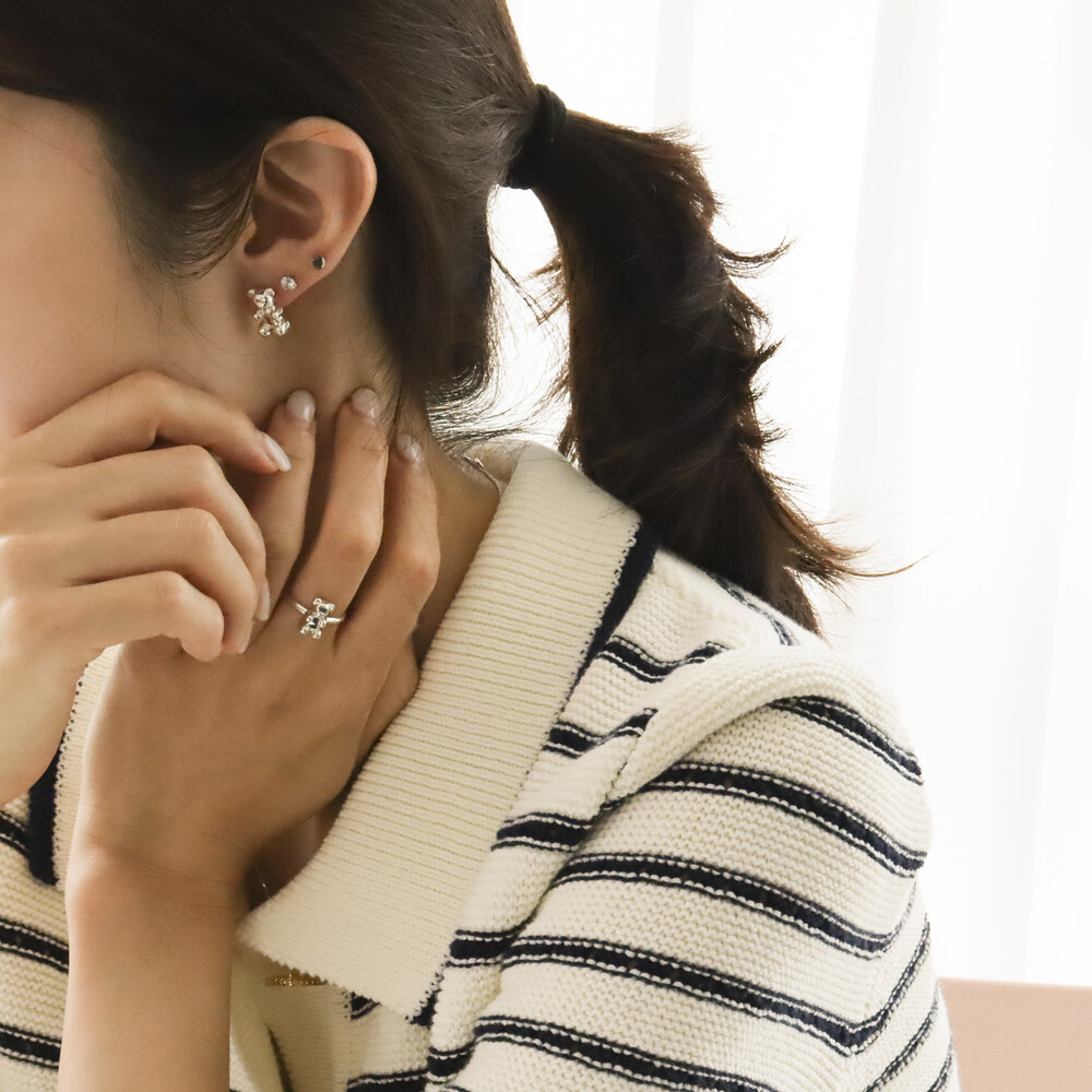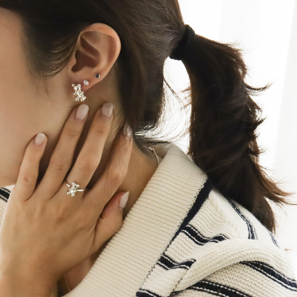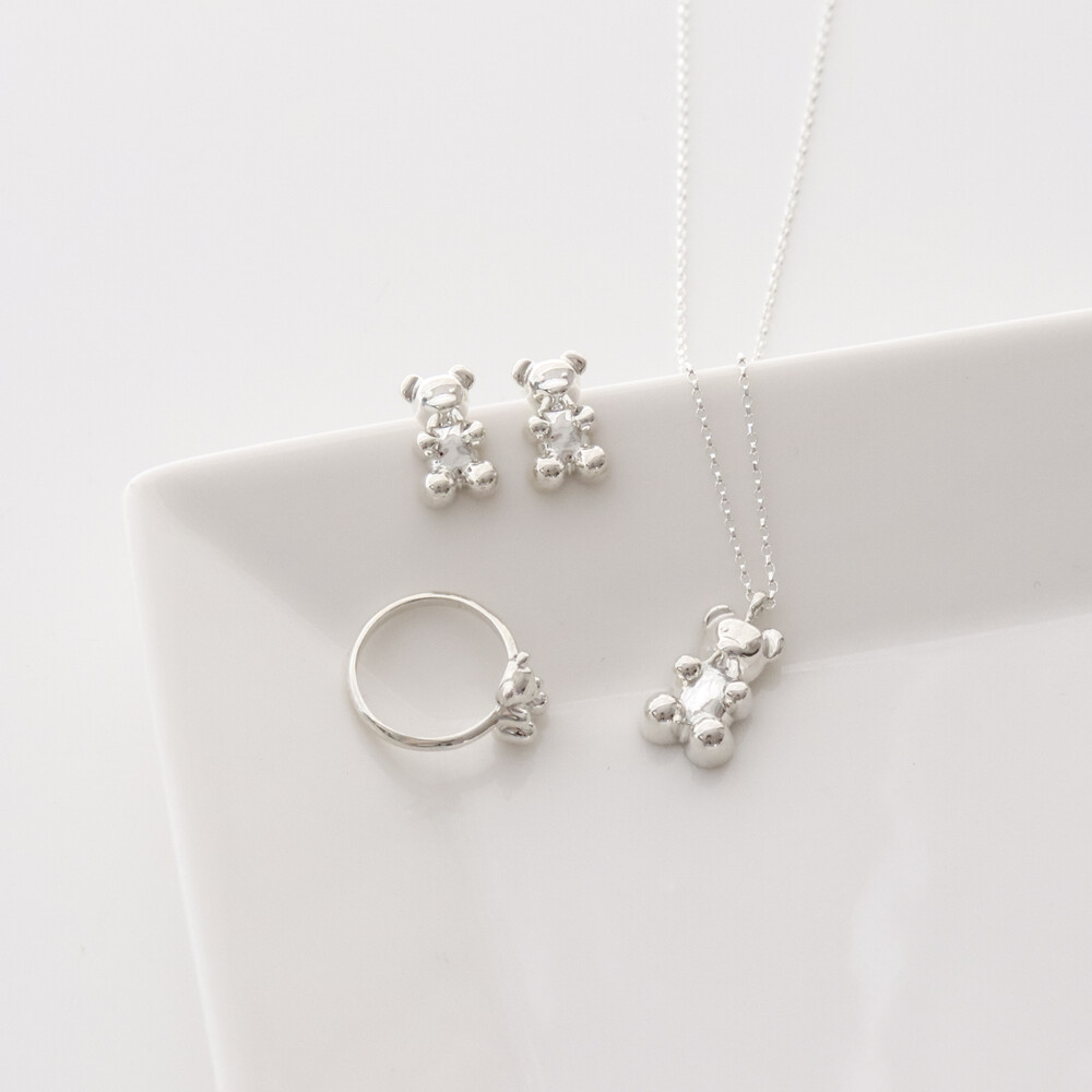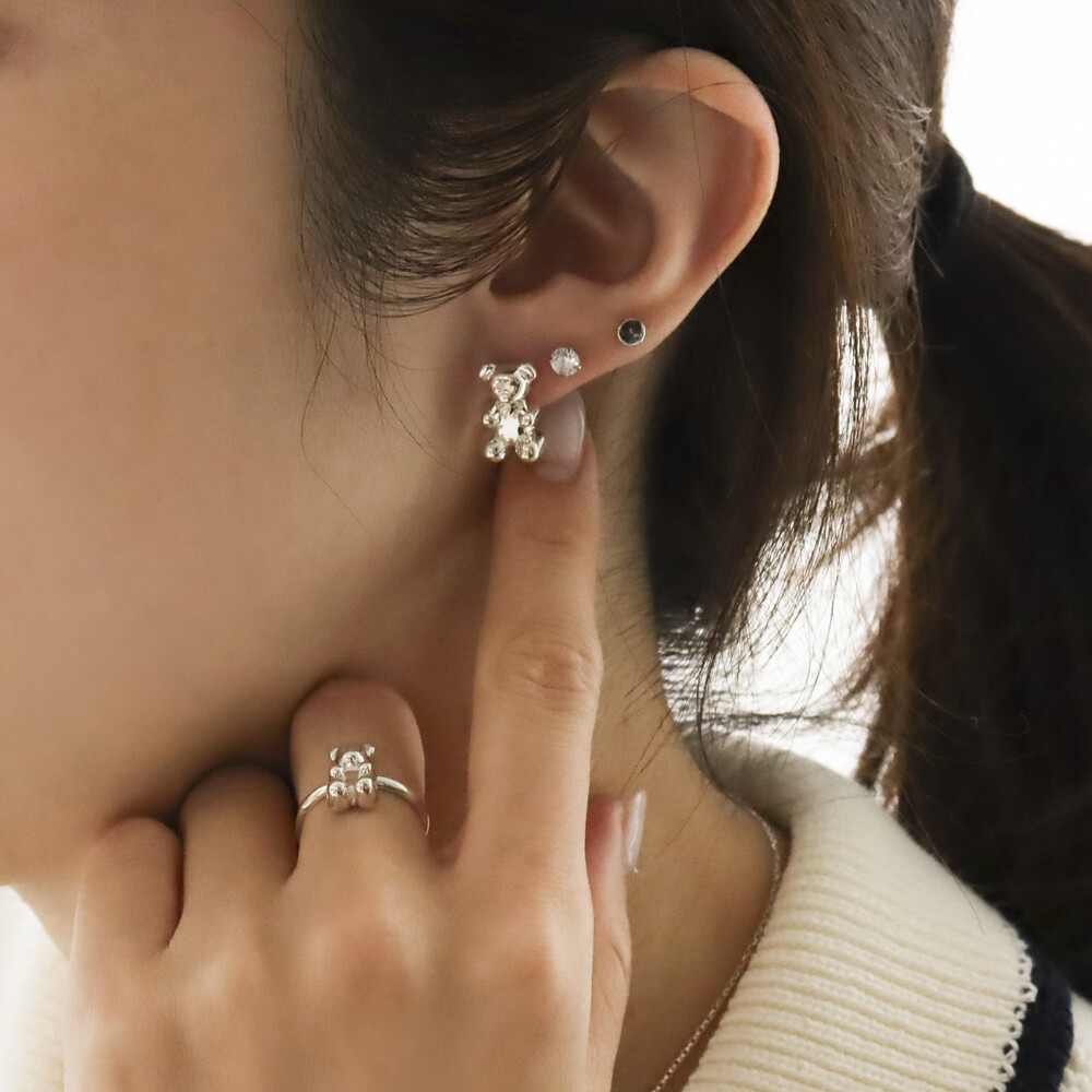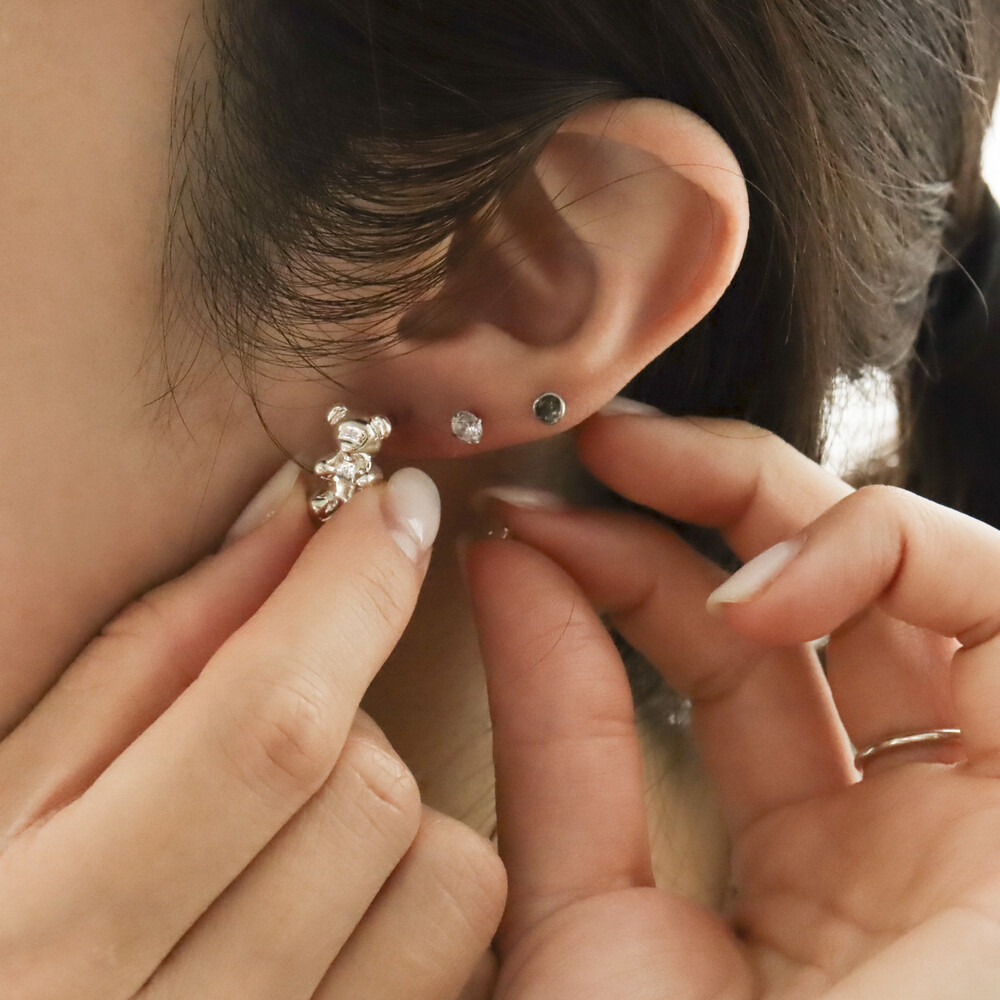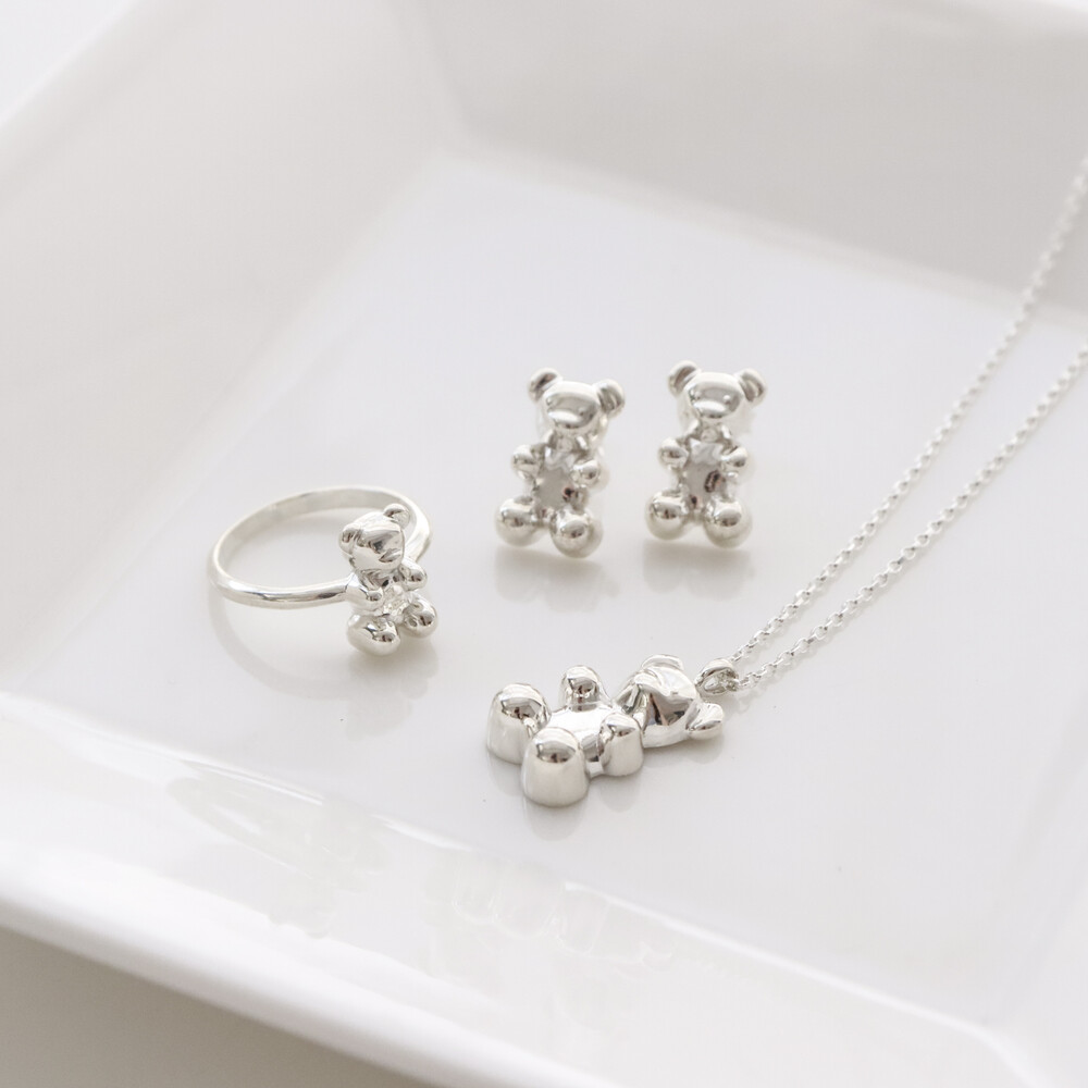 102149 Jelly Bear Motif Stud Silver Earrings