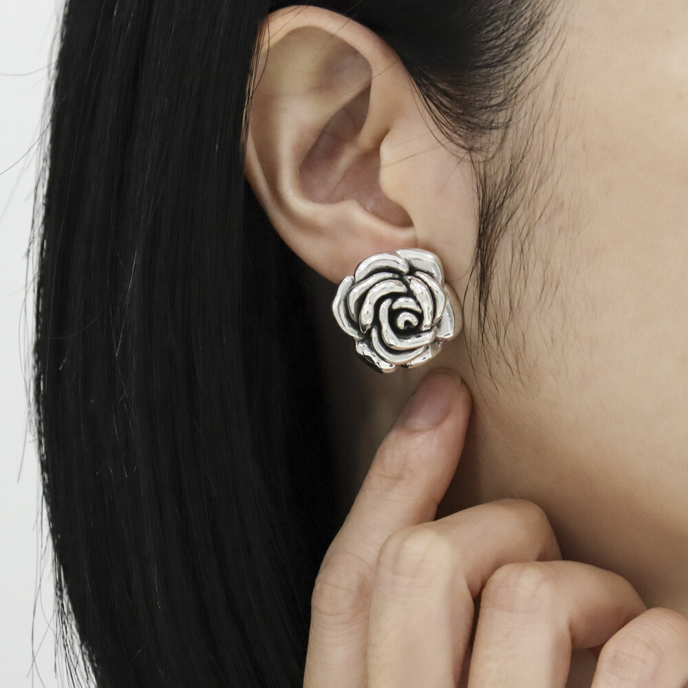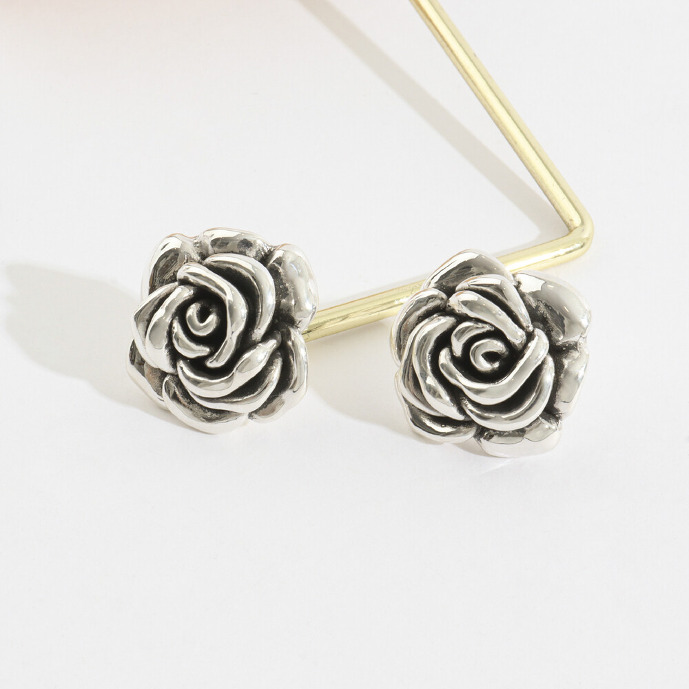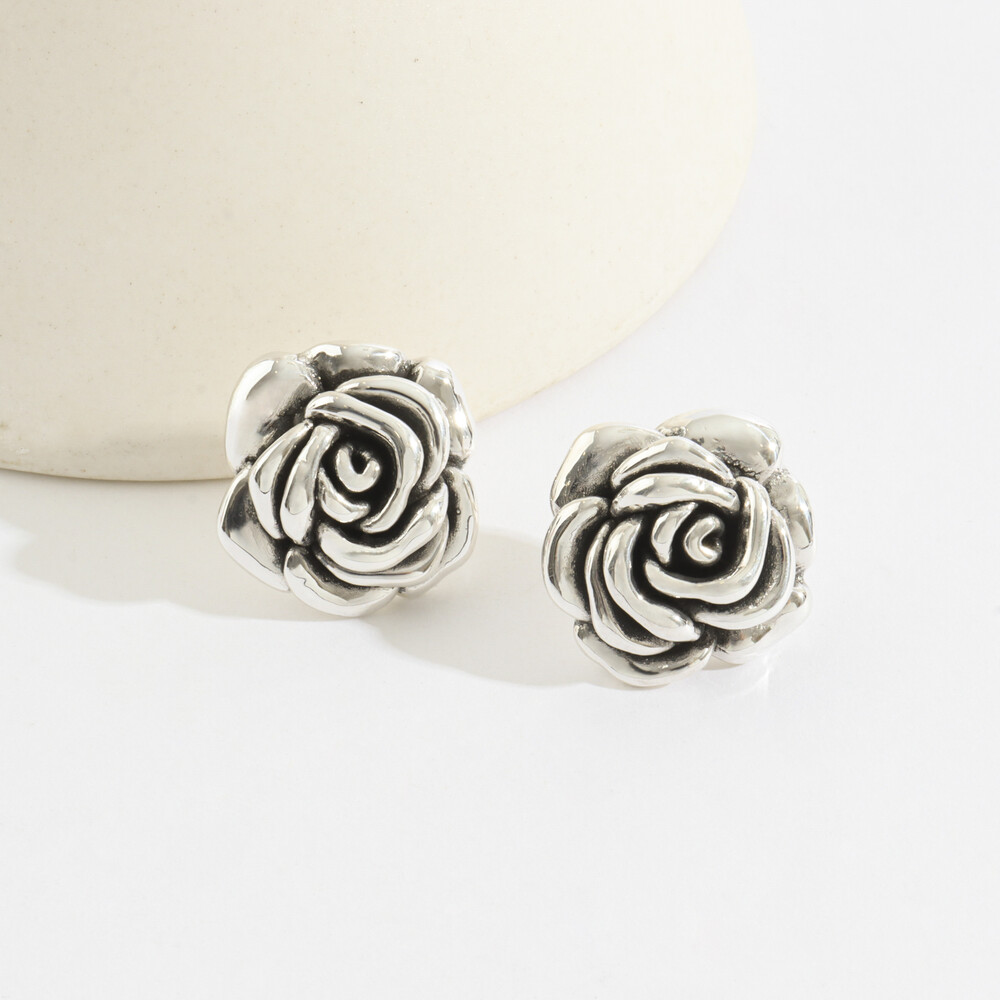102175 Silver925 Rose Oxidized Earrings 20x25mm