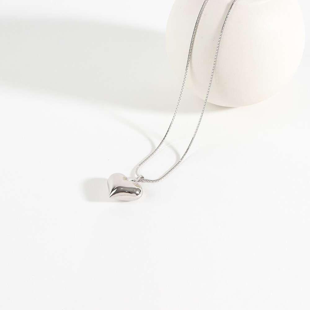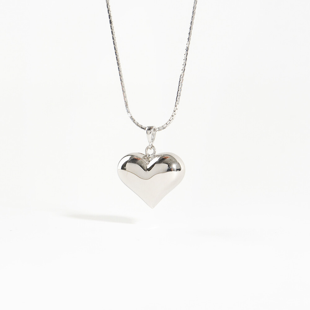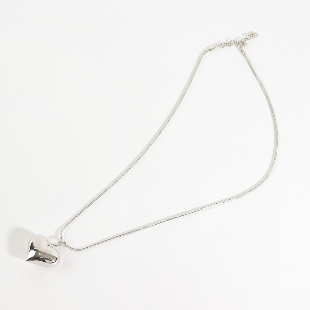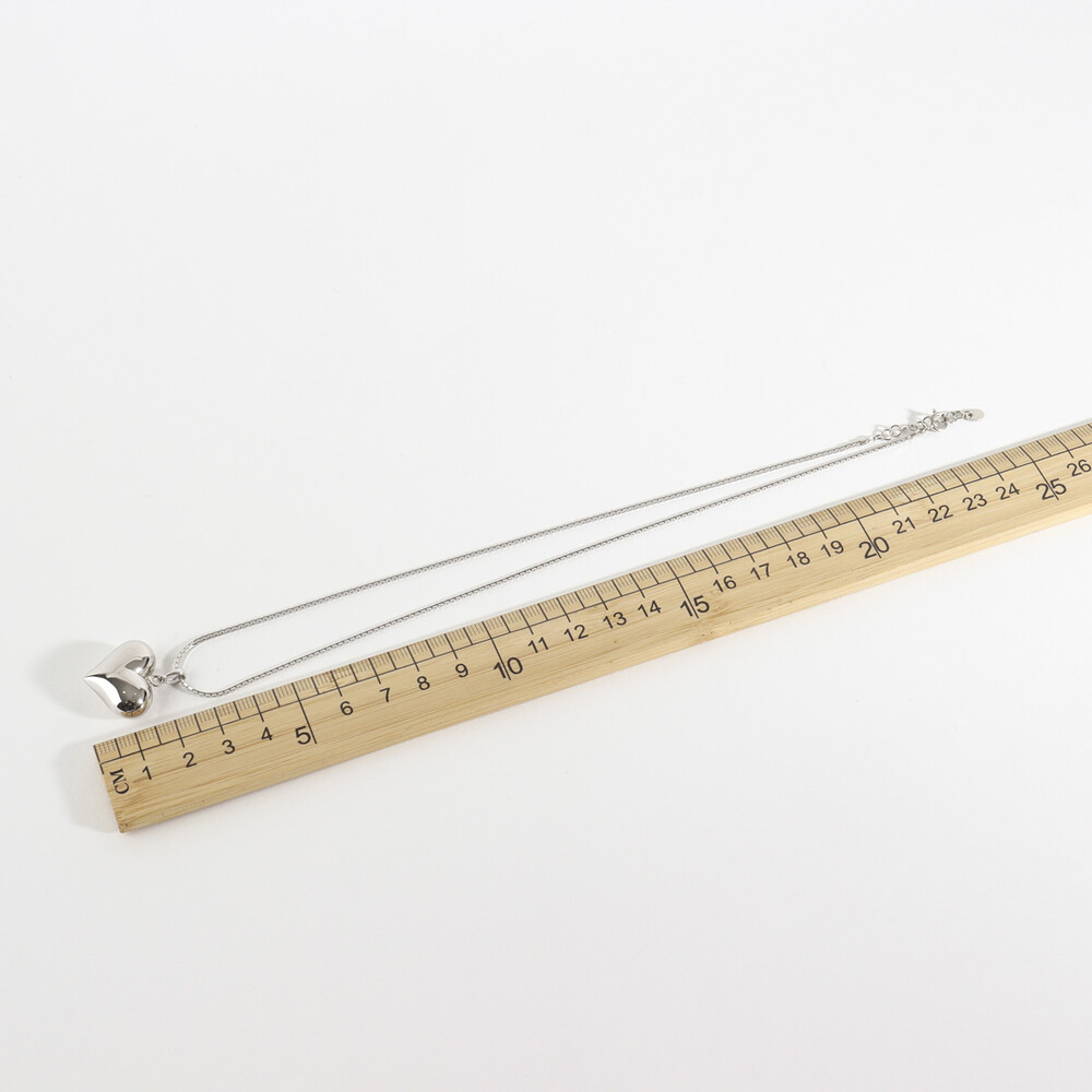 102183 22mm Chunky Heart Pendant Edge Chain Silver 925 Necklace 42+3cm