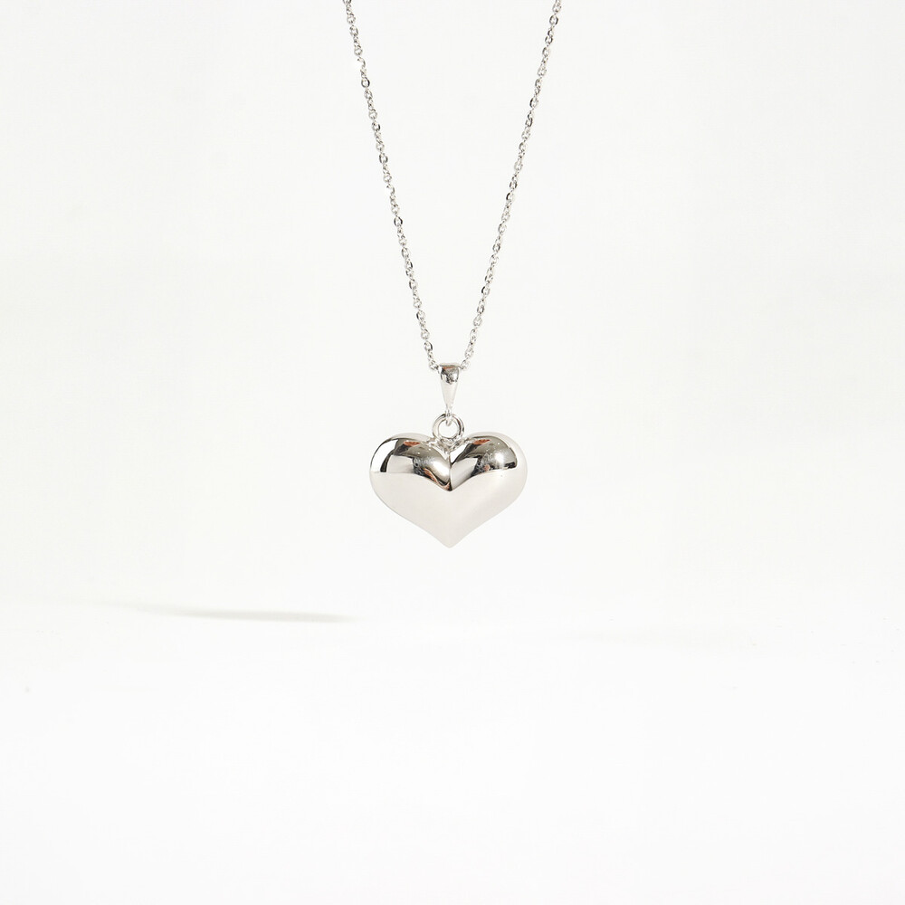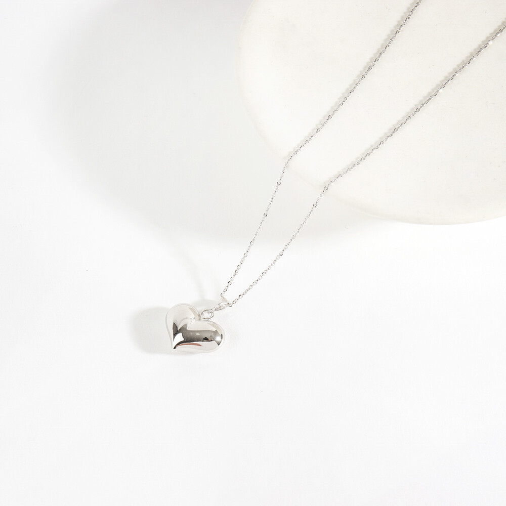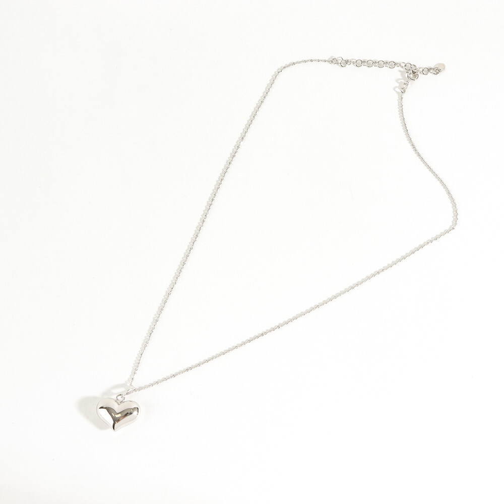 102184 18mm Chunky Heart Pendant Simple Chain Silver 925 Necklace 42+3cm