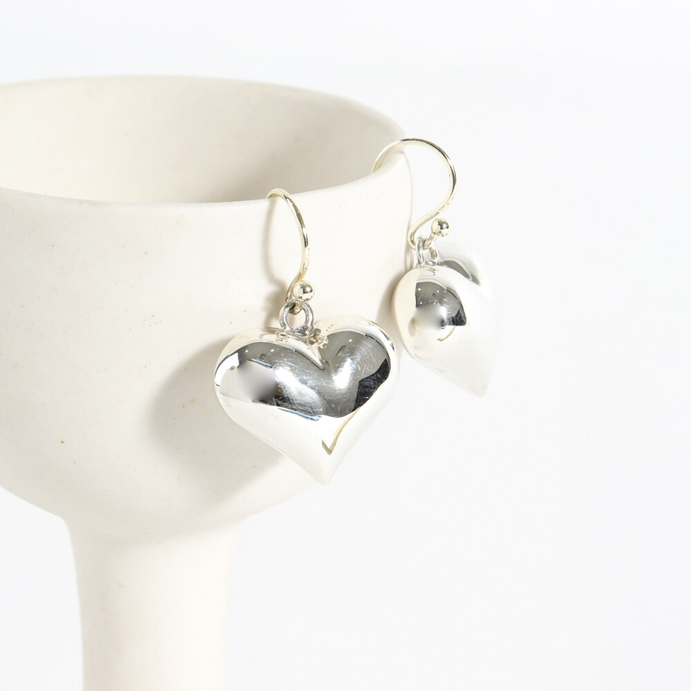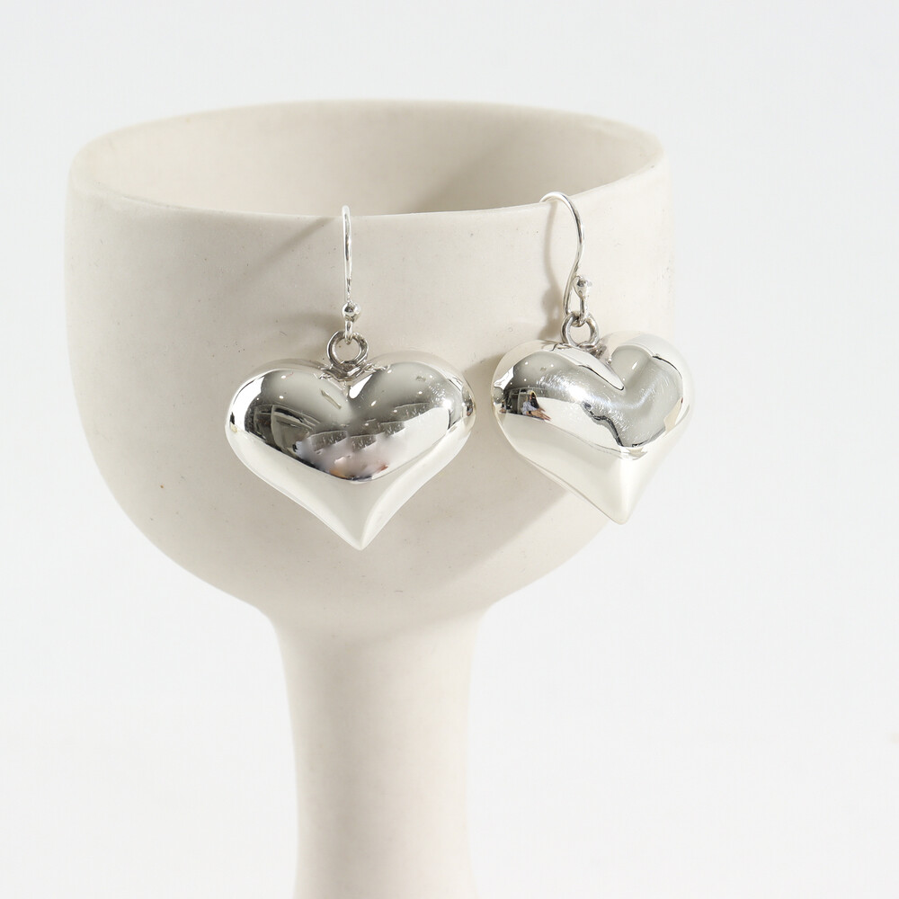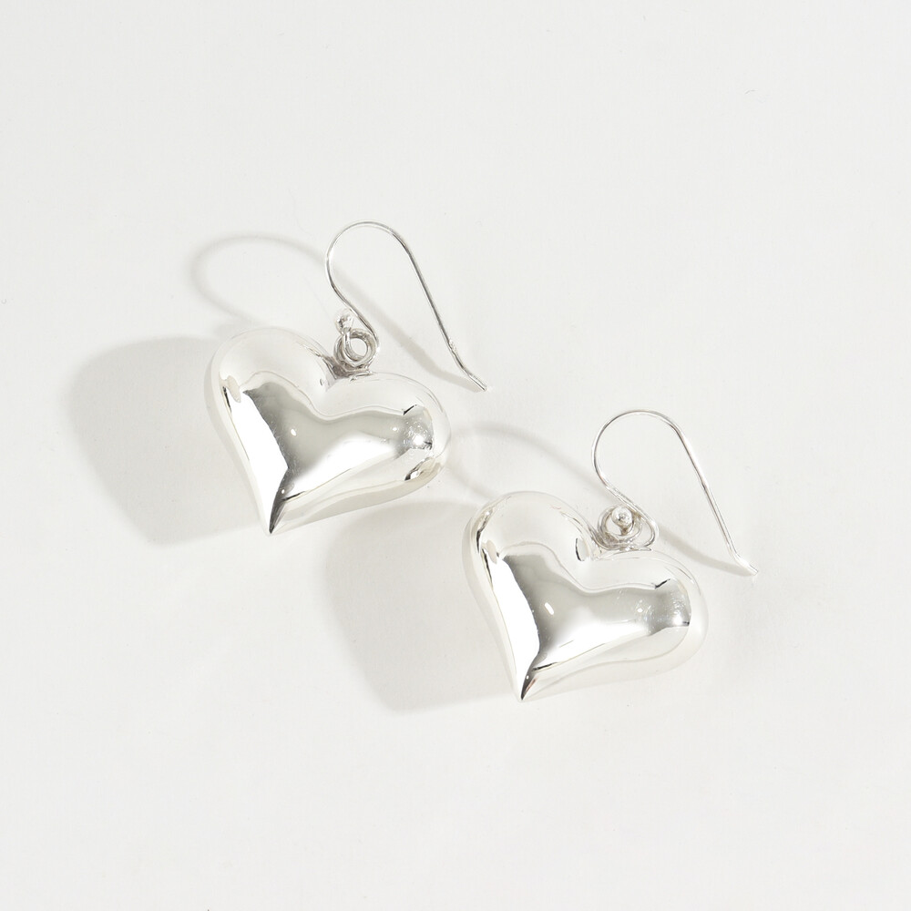 102196 Silver 925 Chunky Heart Drop Earrings