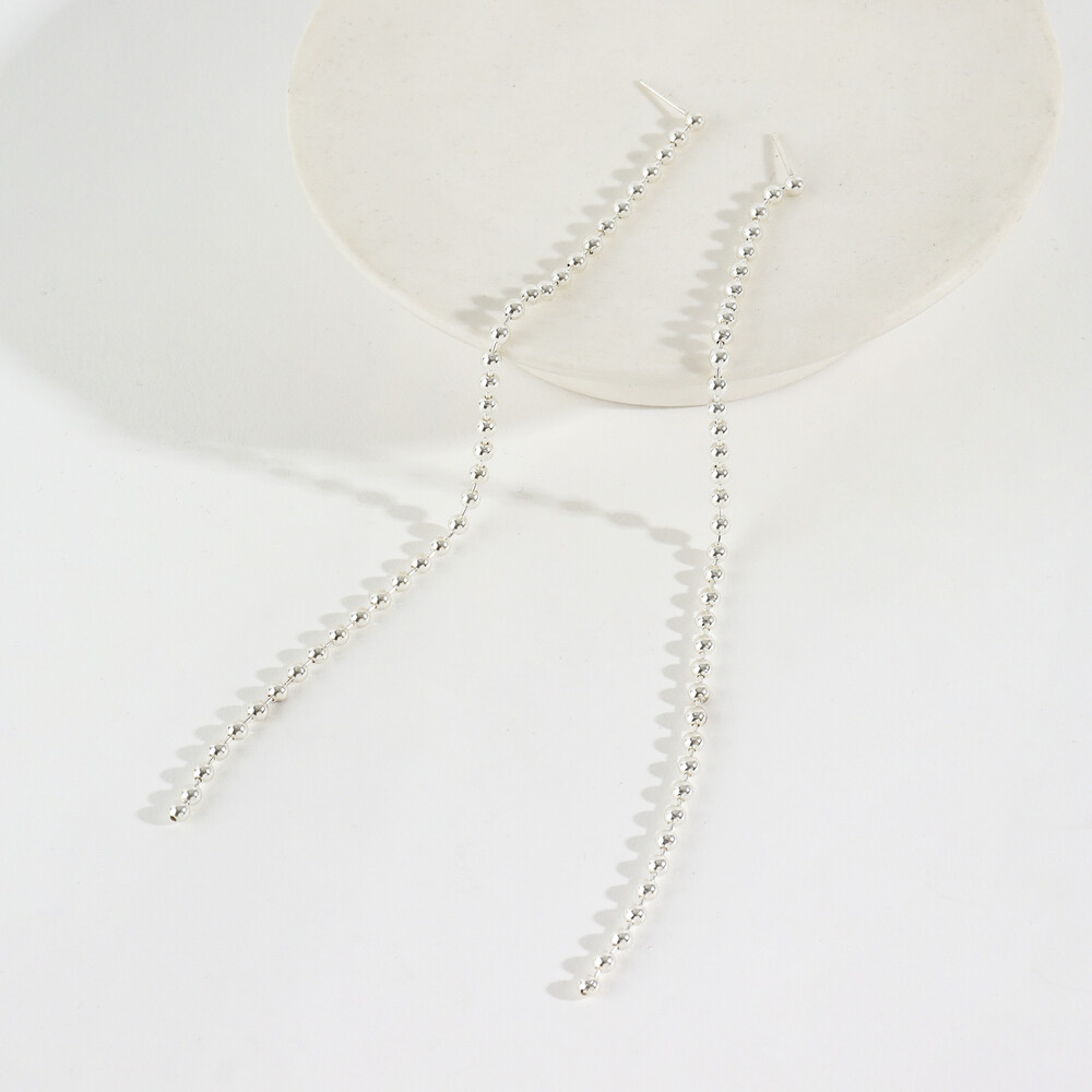 102219 Long Drop Silver Earrings