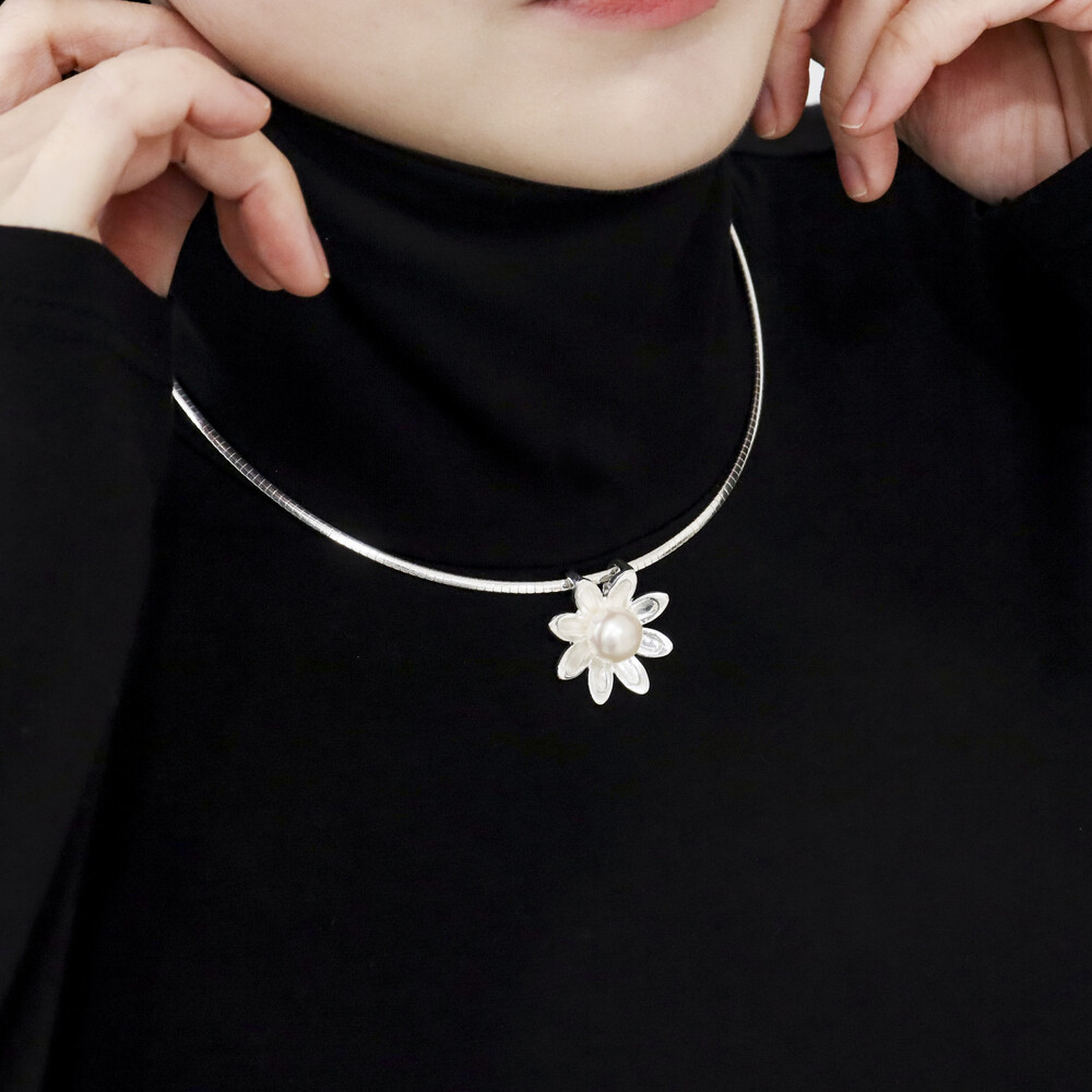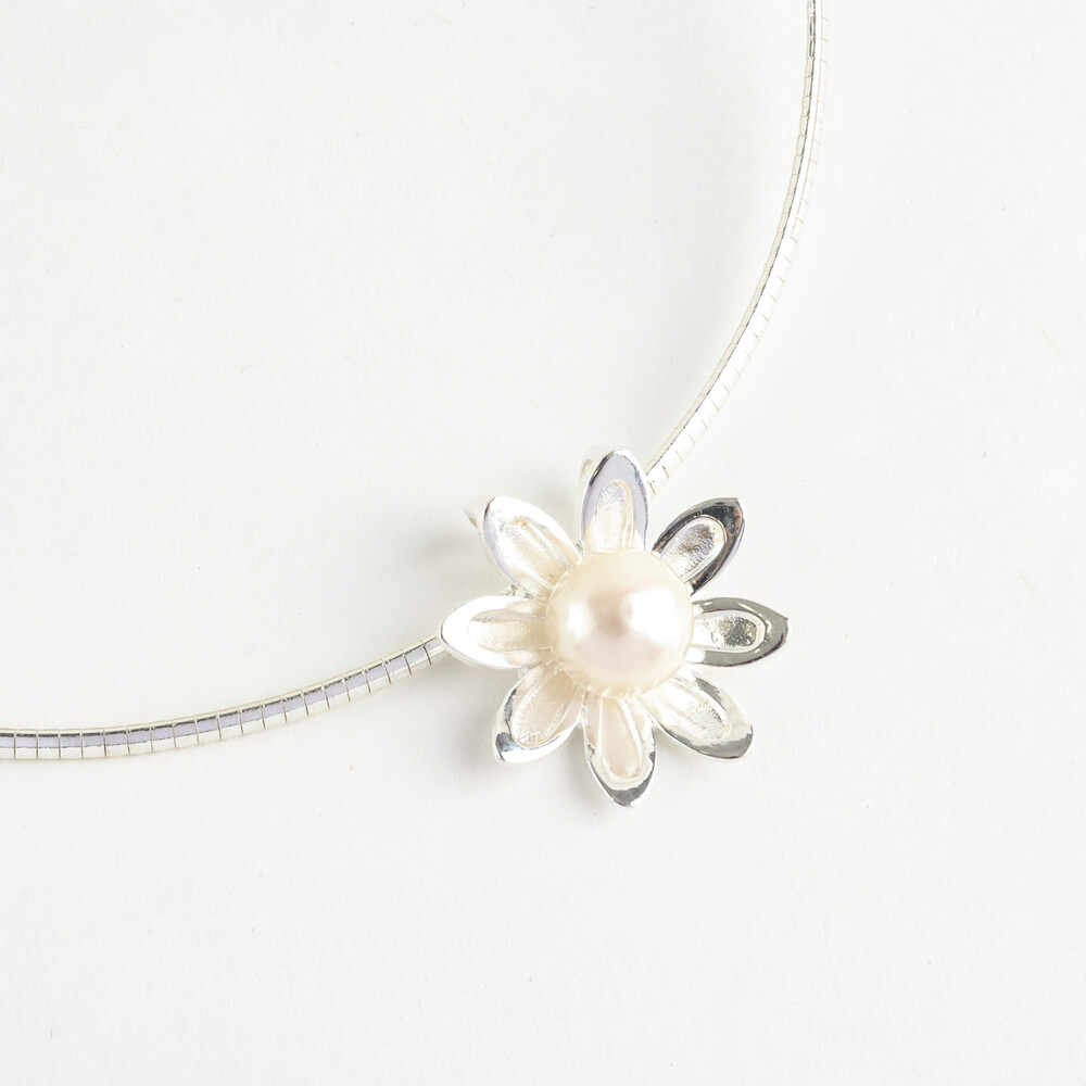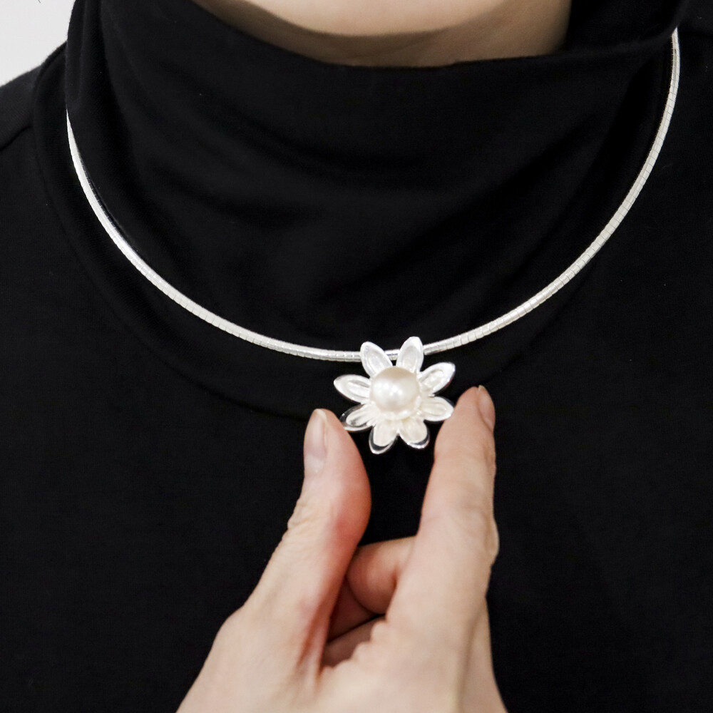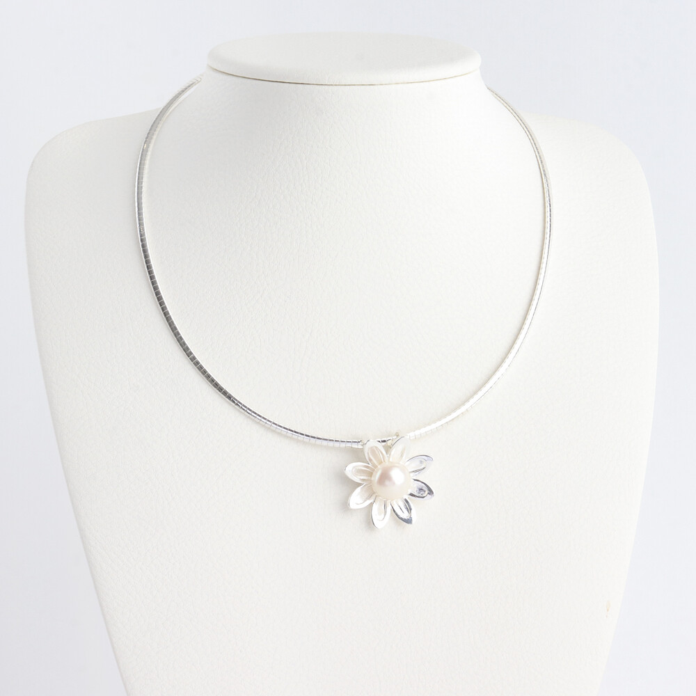 102304 102320 Freshwater Pearl Flower Motif Silver Necklace