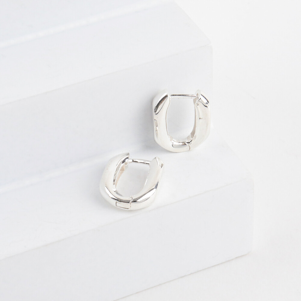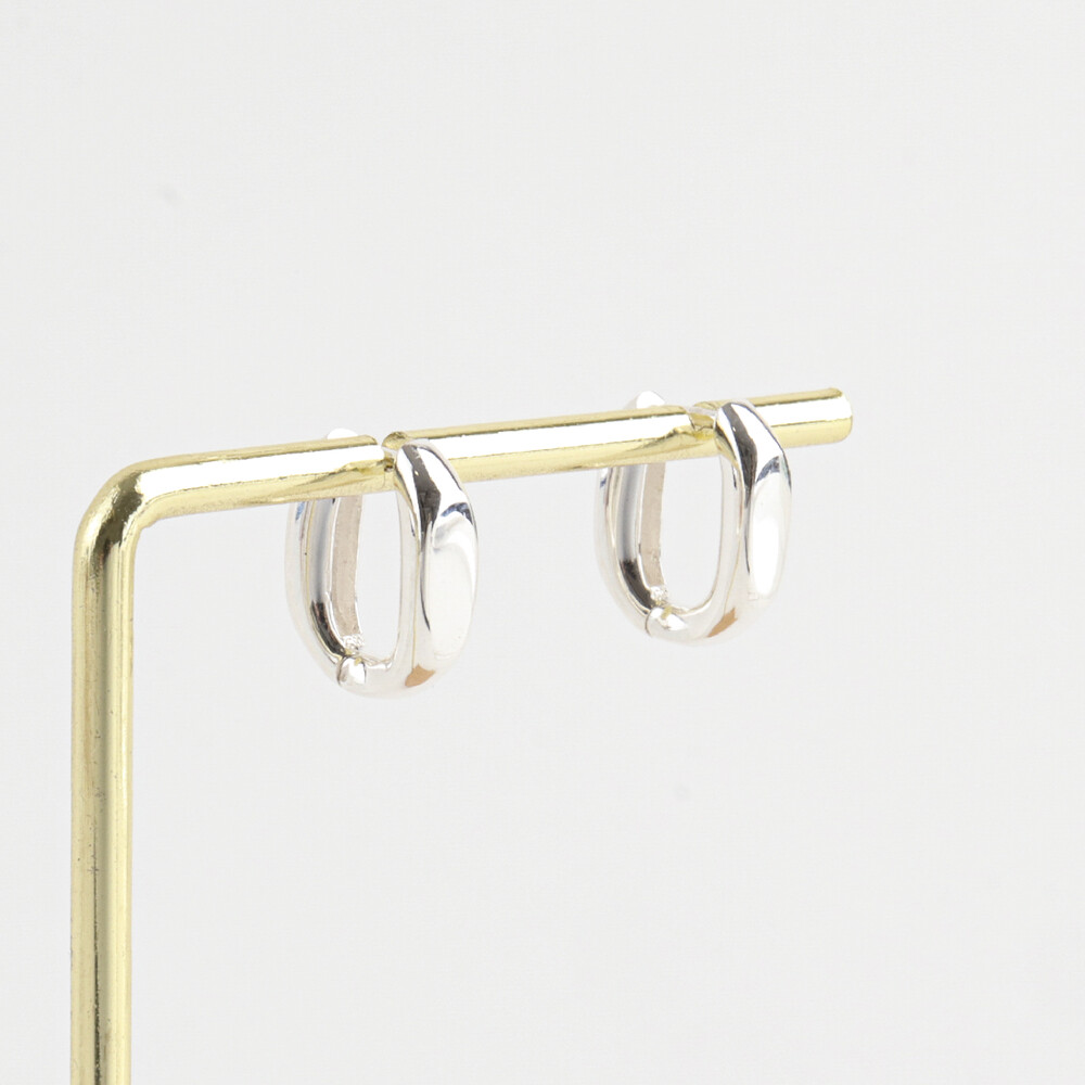 102353 Small Oval Hoop Silver Earrings 10x15mm